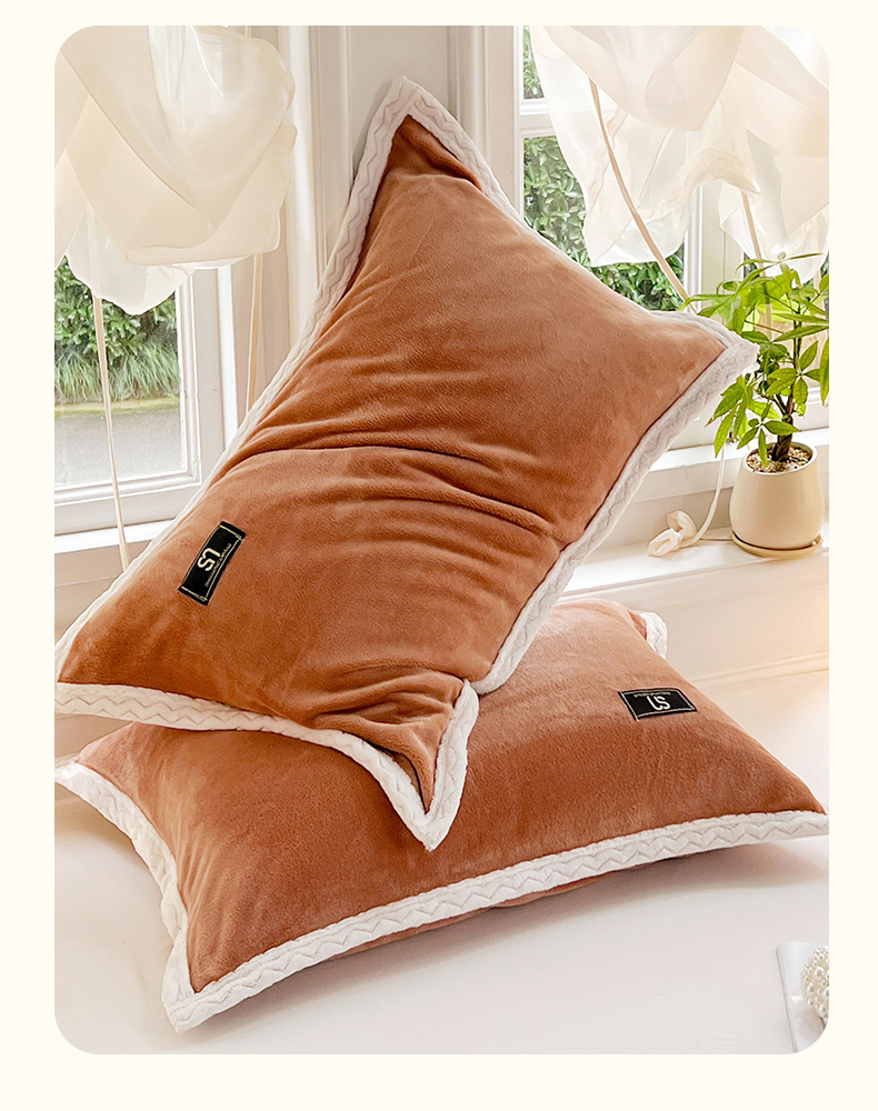 悦织语 2024新款单品高克重宽边牛奶绒枕套 红棕