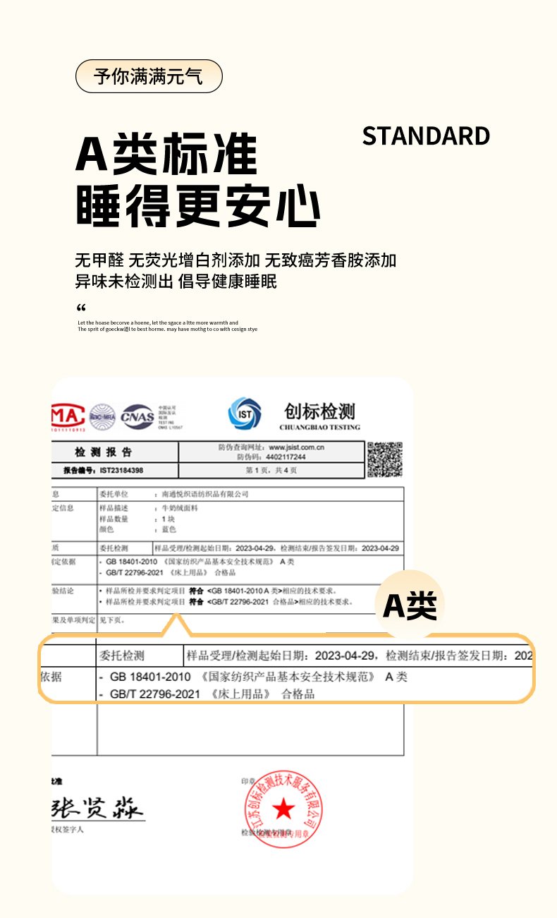 4、通州区市场监管局川姜分局友情提醒:近期针对抗静电,无静电,抗菌防螨,及有关舒适度,百分比的举报高发。为不影响商品正常销售,请各商家高度重视,自检自查及时整改,谢谢配合!