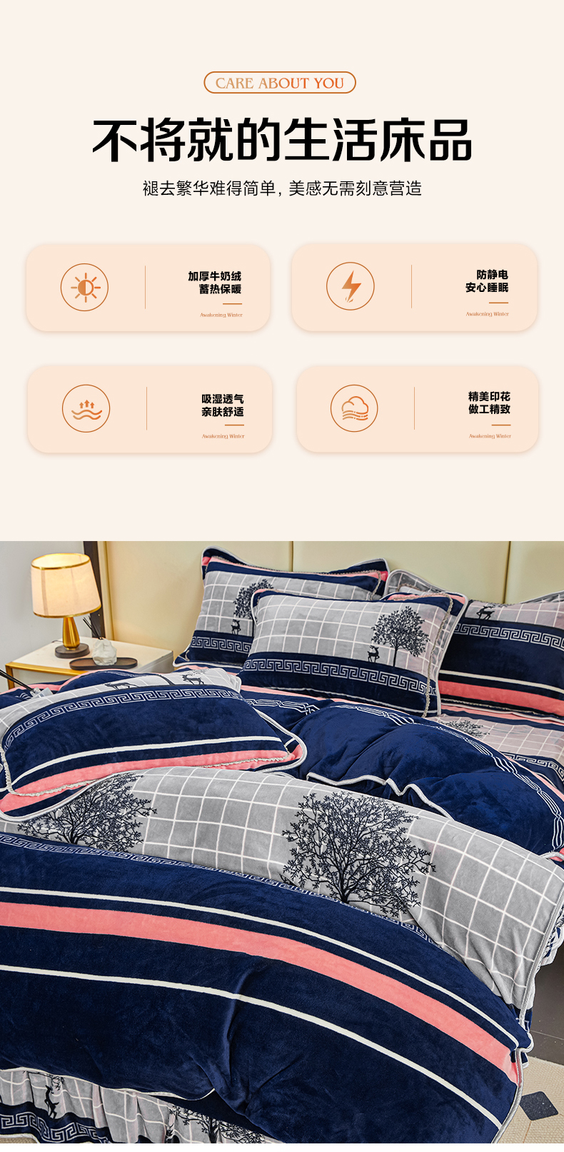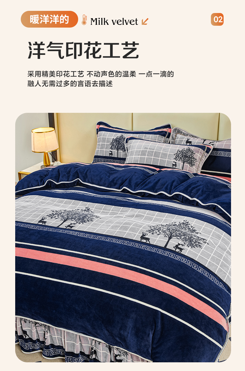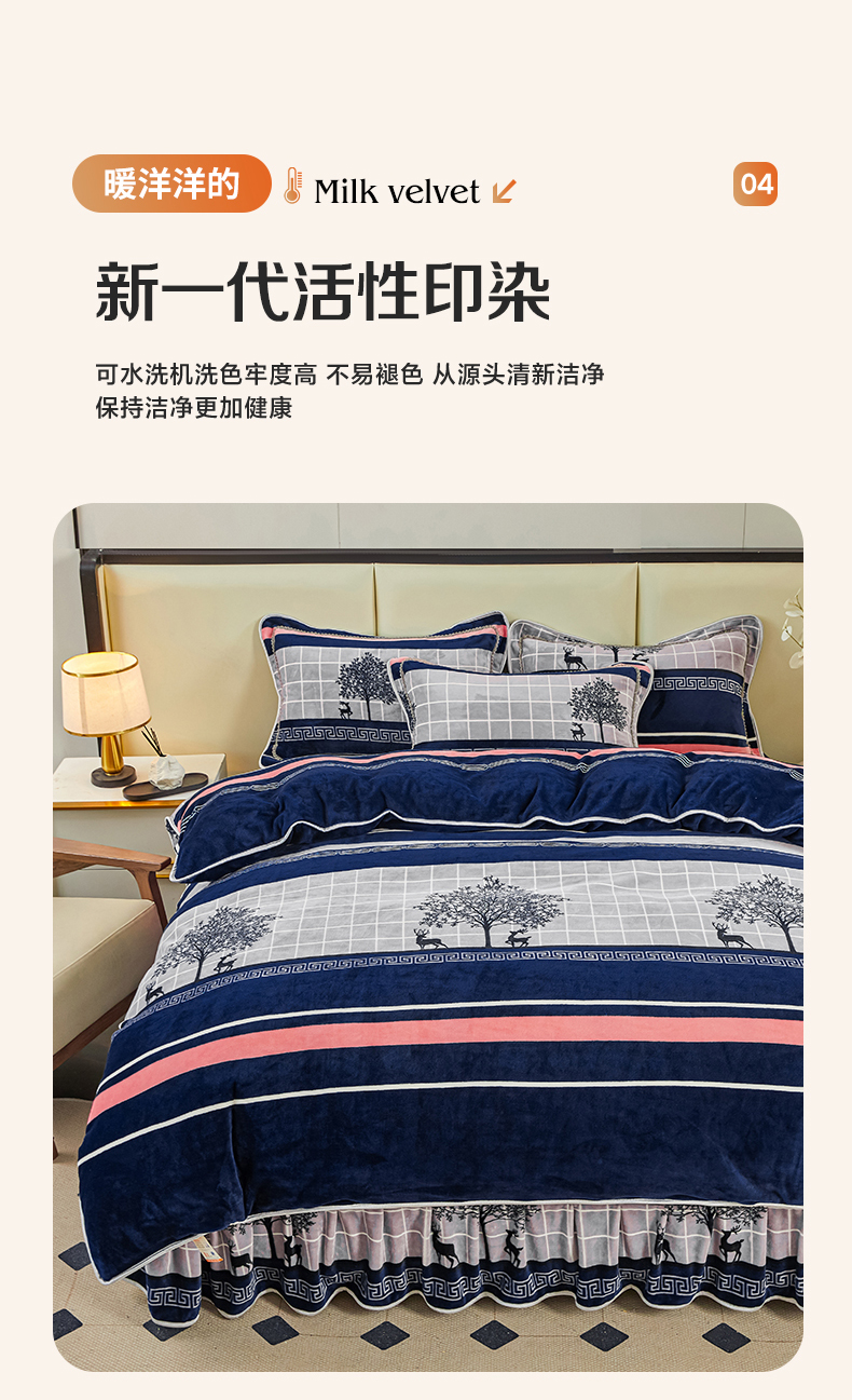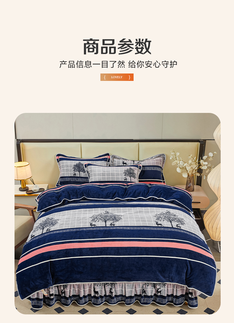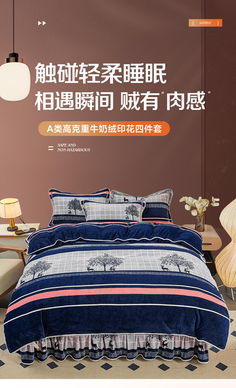 当前位置: 91家纺网 > 商品网购 > 床品套件 > 四件套 > 牛奶绒四件套 > 博兰蒂 2025新款床裙款高克重牛奶绒印花四件套 一路有你