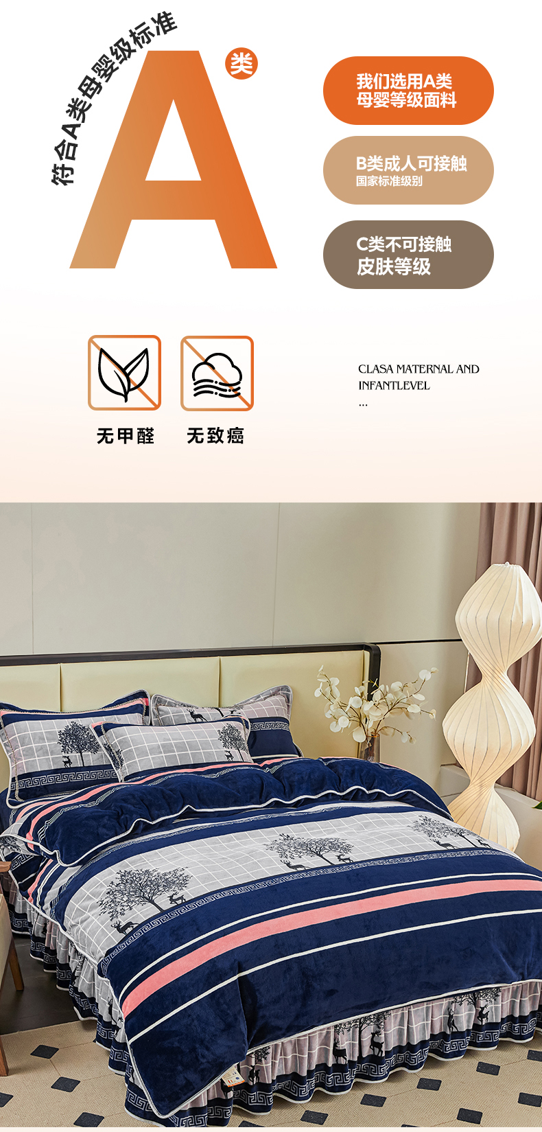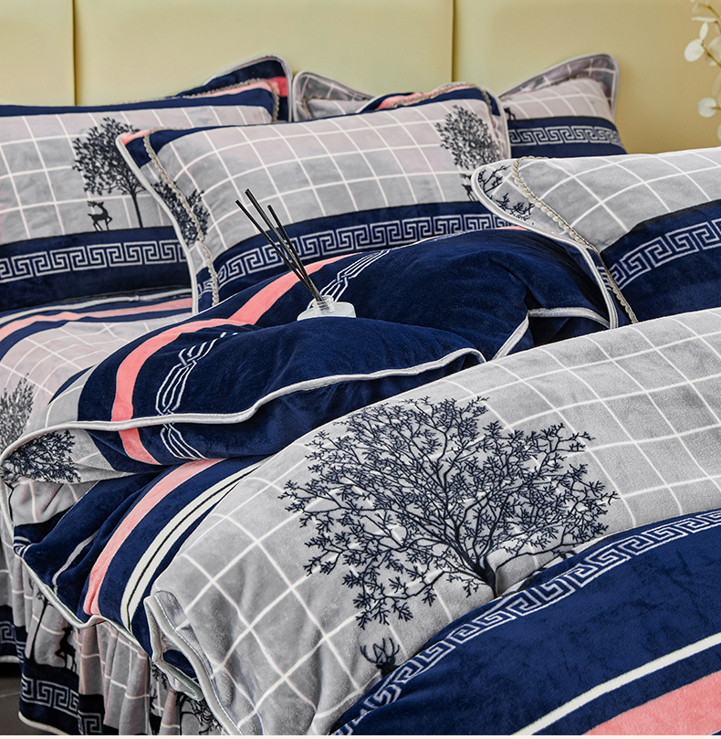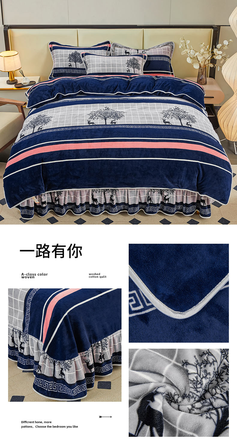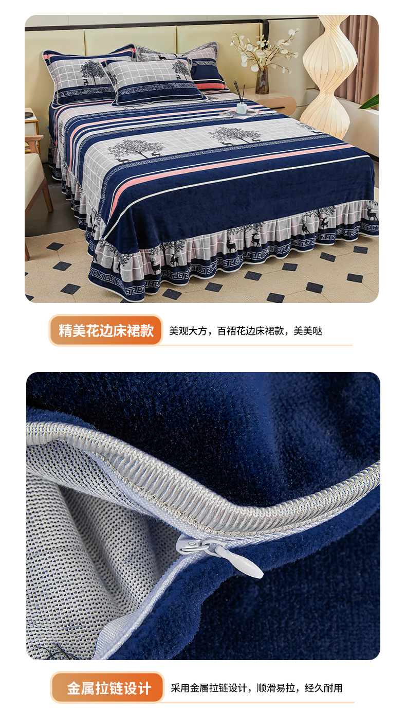 当前位置: 91家纺网 > 商品网购 > 床品套件 > 四件套 > 牛奶绒四件套 > 博兰蒂 2025新款床裙款高克重牛奶绒印花四件套 一路有你