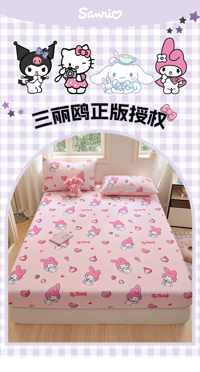 (总)博雅 2024新款三丽鸥卡通系列全棉印花床笠