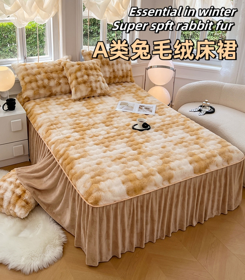 商品名称:圣比熊 2025新款兔毛绒床裙水晶绒床垫保护罩牛奶绒床垫床单罩 梦幻奶咖