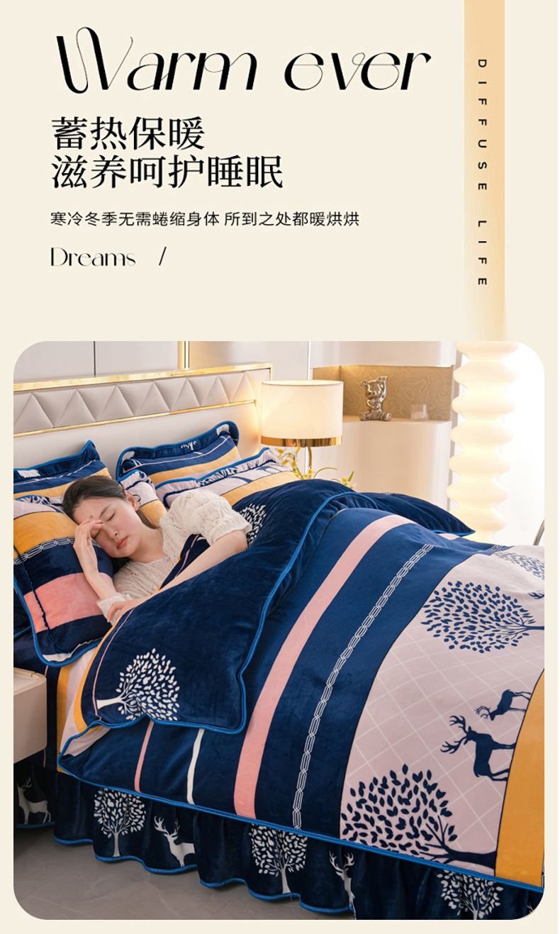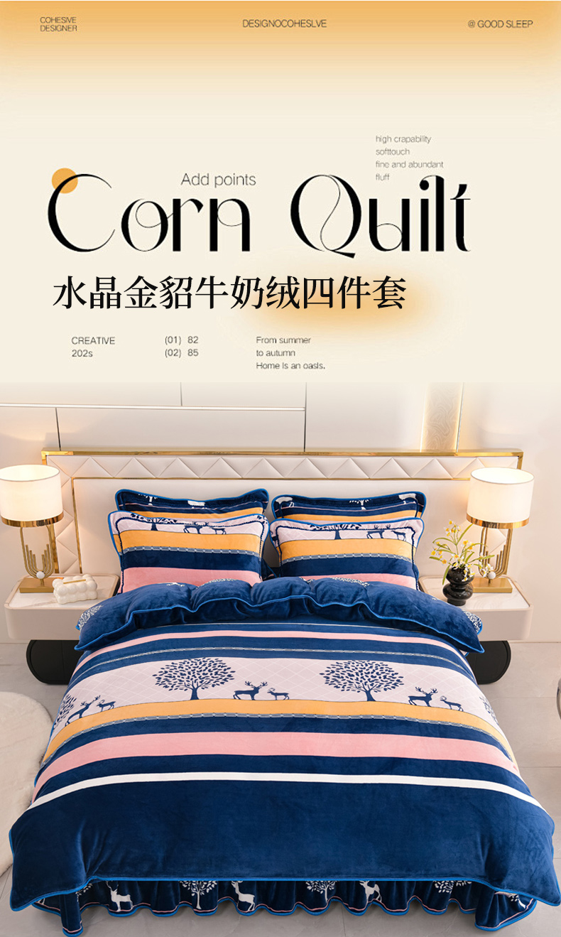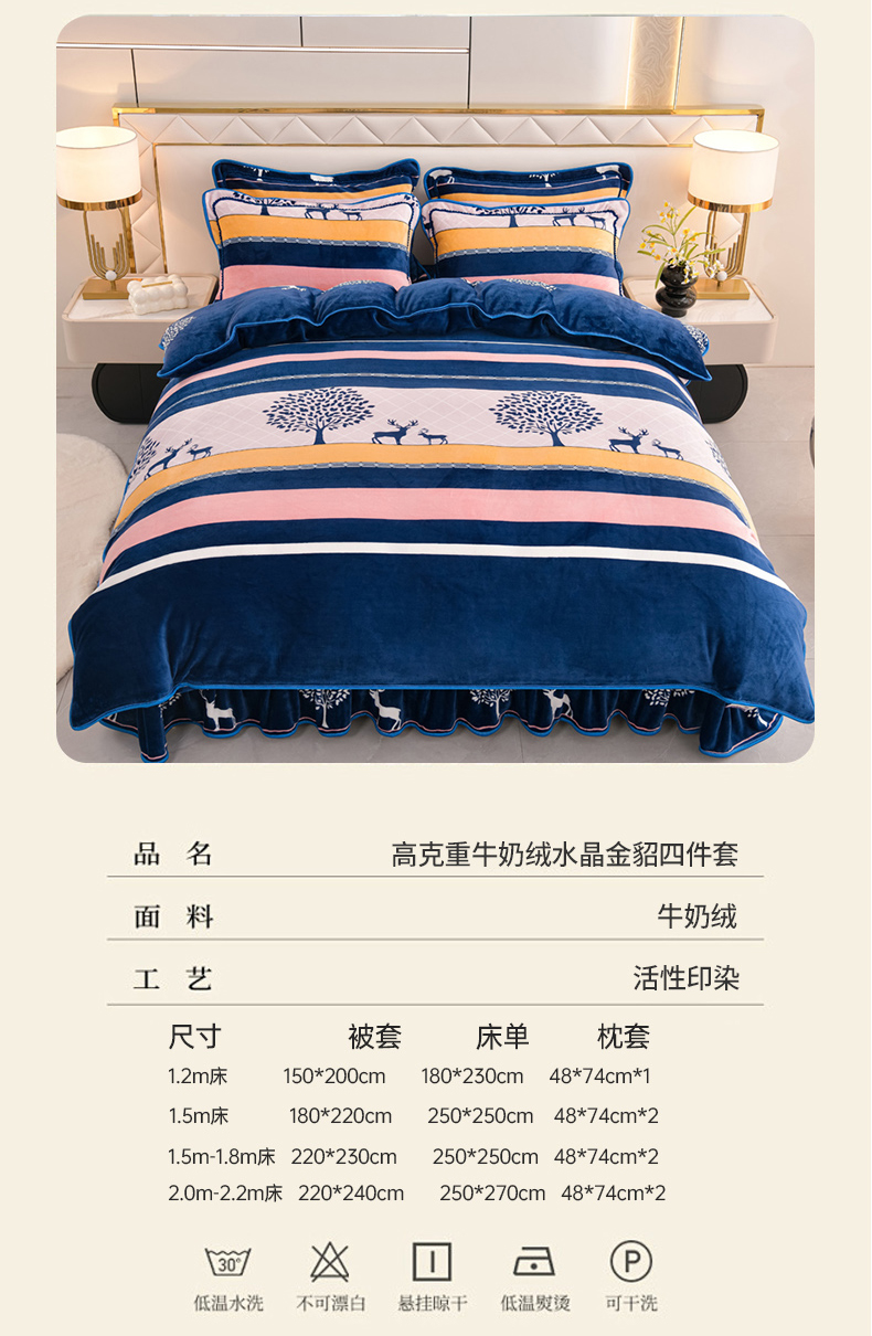 当前位置: 91家纺网 > 商品网购 > 床品套件 > 四件套 > 牛奶绒四件套 > 芯诗曼2025新款8.5斤直播热款高克重牛奶绒法莱绒水晶金貂法莱绒四件套春华秋实