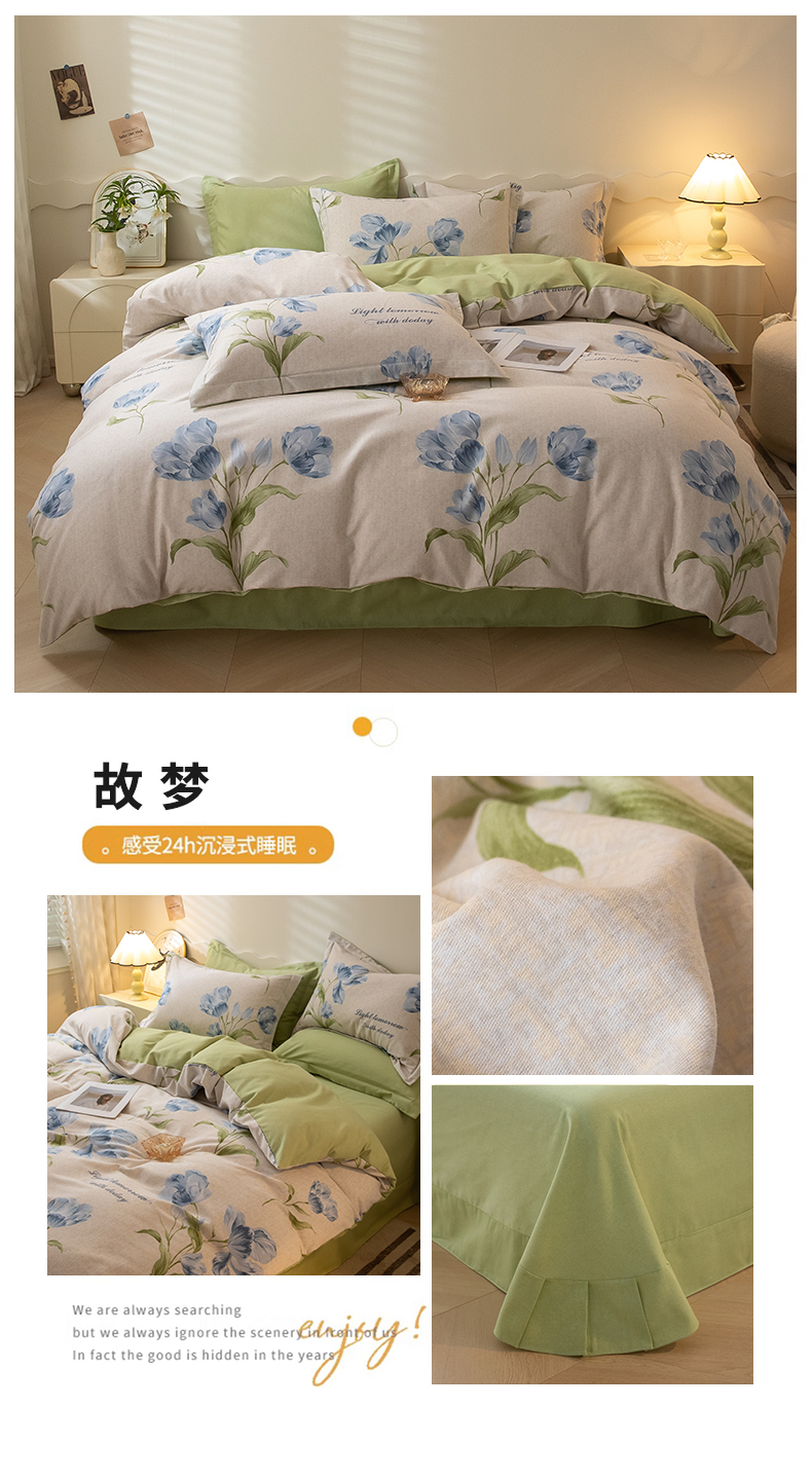 启程家纺 2024全棉生态磨毛印花四件套 故梦