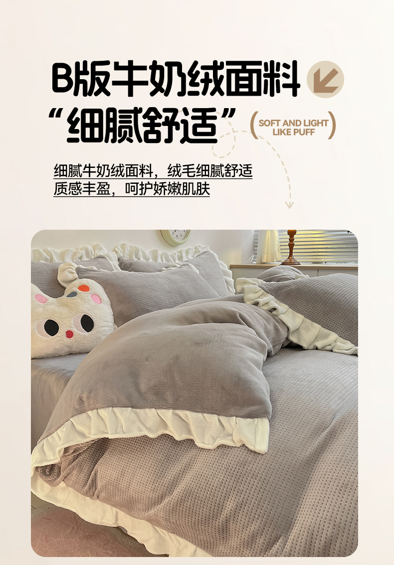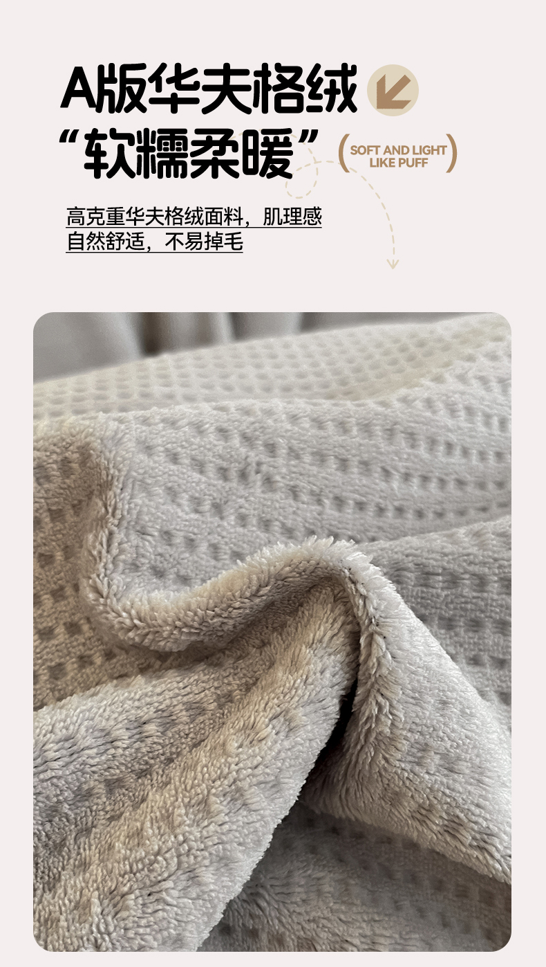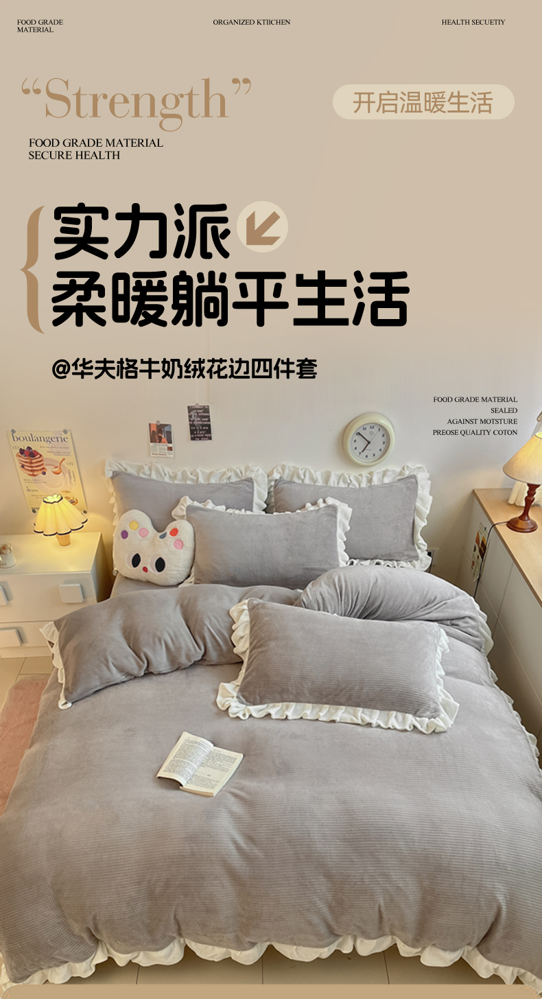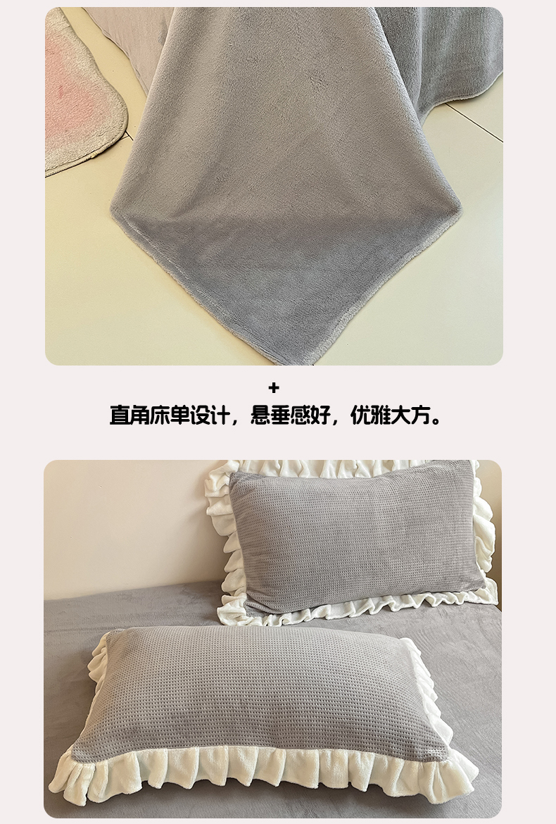 商品名称:星座家纺 2025新款华夫格花边款牛奶绒四件套 华夫格-火山灰