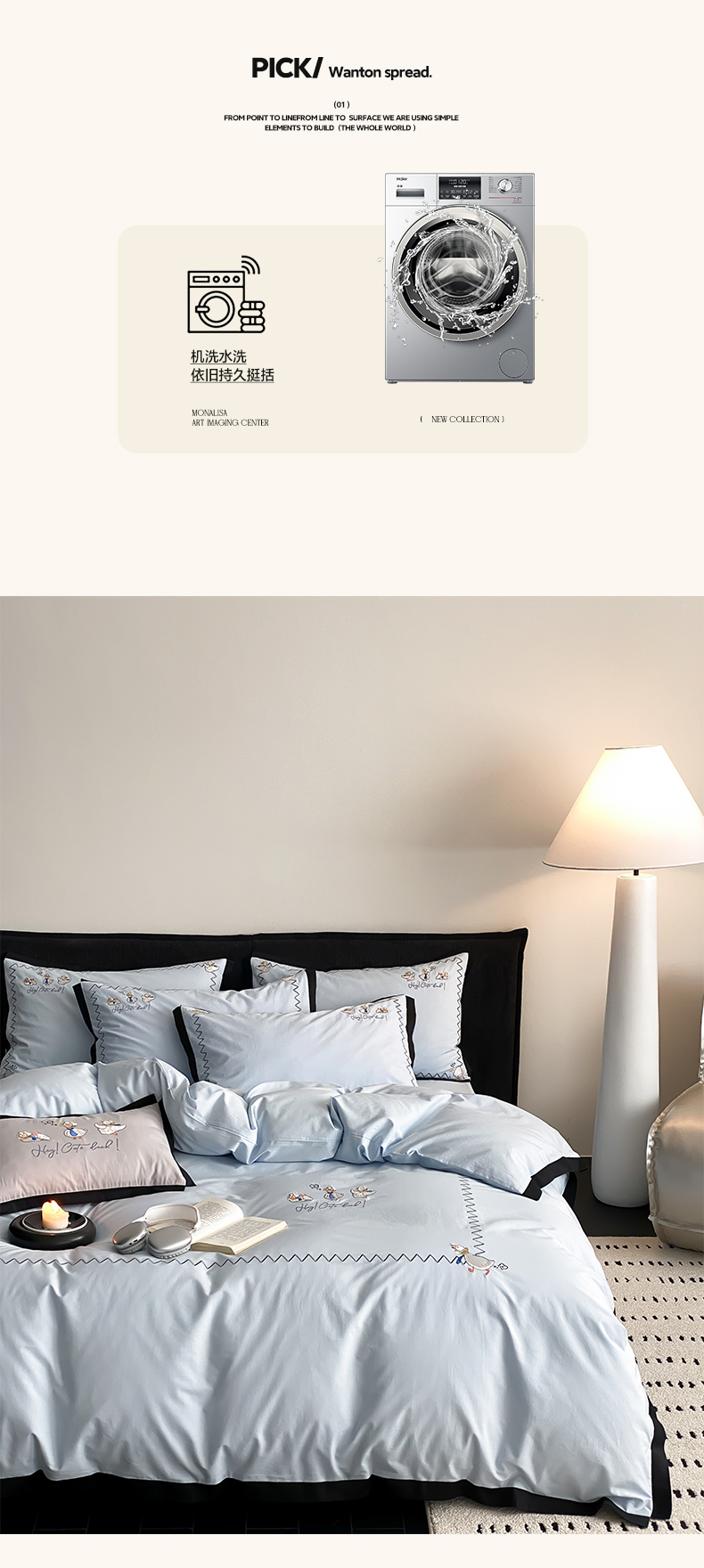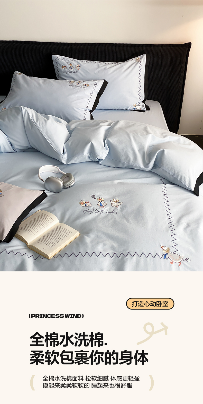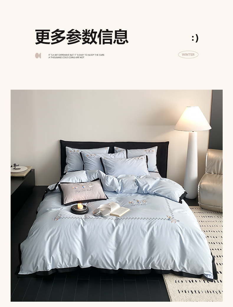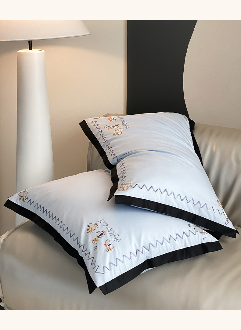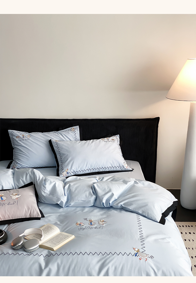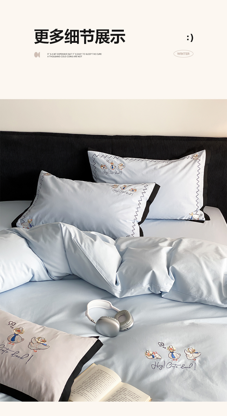 商品名称:如一 2024新款A类全棉水洗棉工艺刺绣四件套-加油鸭系列 加油鸭-青春蓝