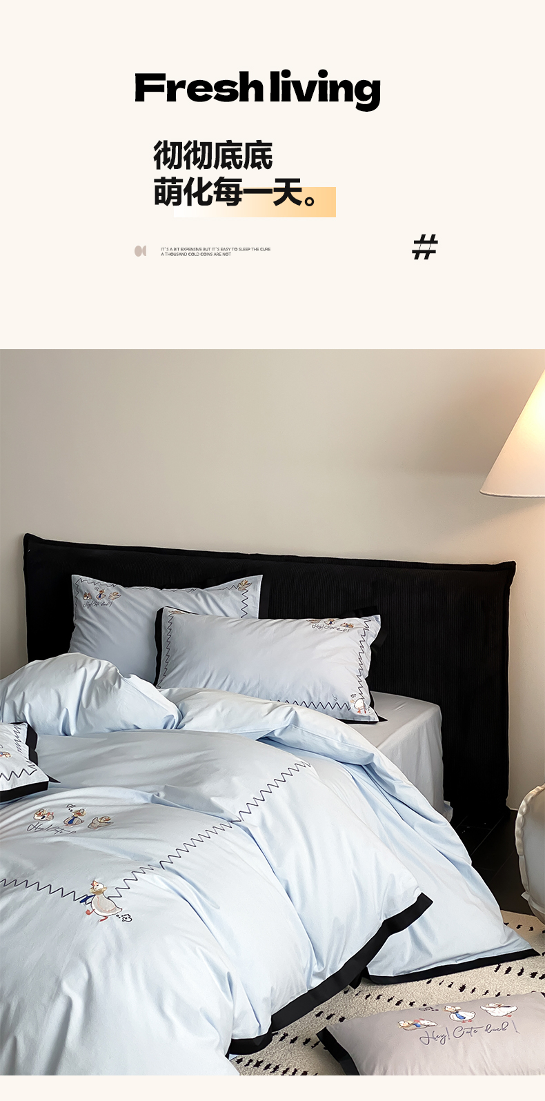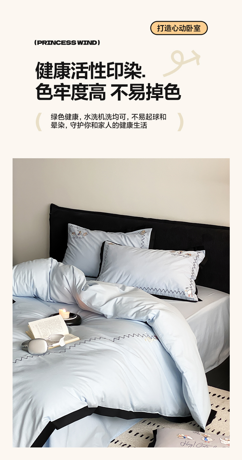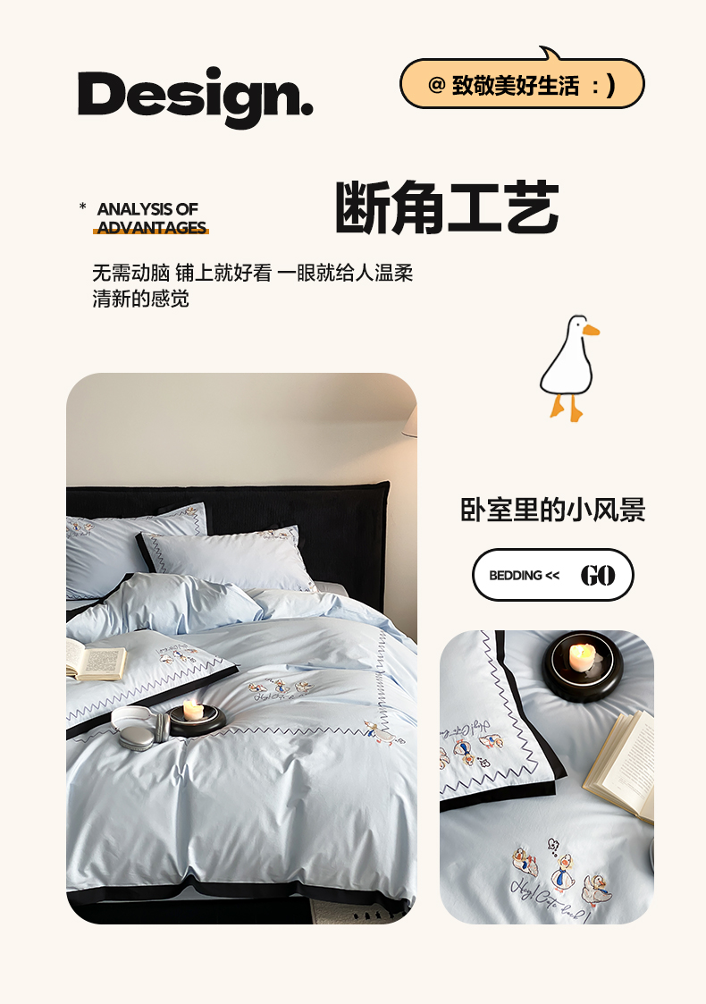 如一 2024新款A类全棉水洗棉工艺刺绣四件套-加油鸭系列 加油鸭-青春蓝