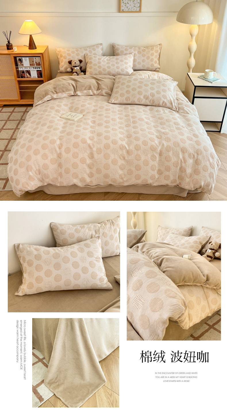 商品名称:柠馨 2024新款轻奢全棉三层纱牛奶绒棉绒加厚保暖四件套 棉绒-波妞咖