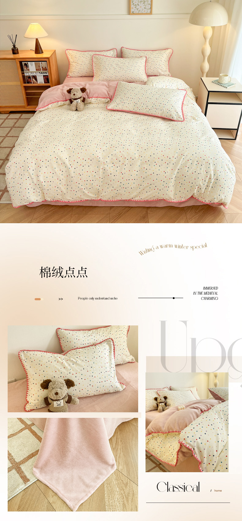柠馨 2024新款简约时尚全棉牛奶绒棉绒四件套 棉绒点点