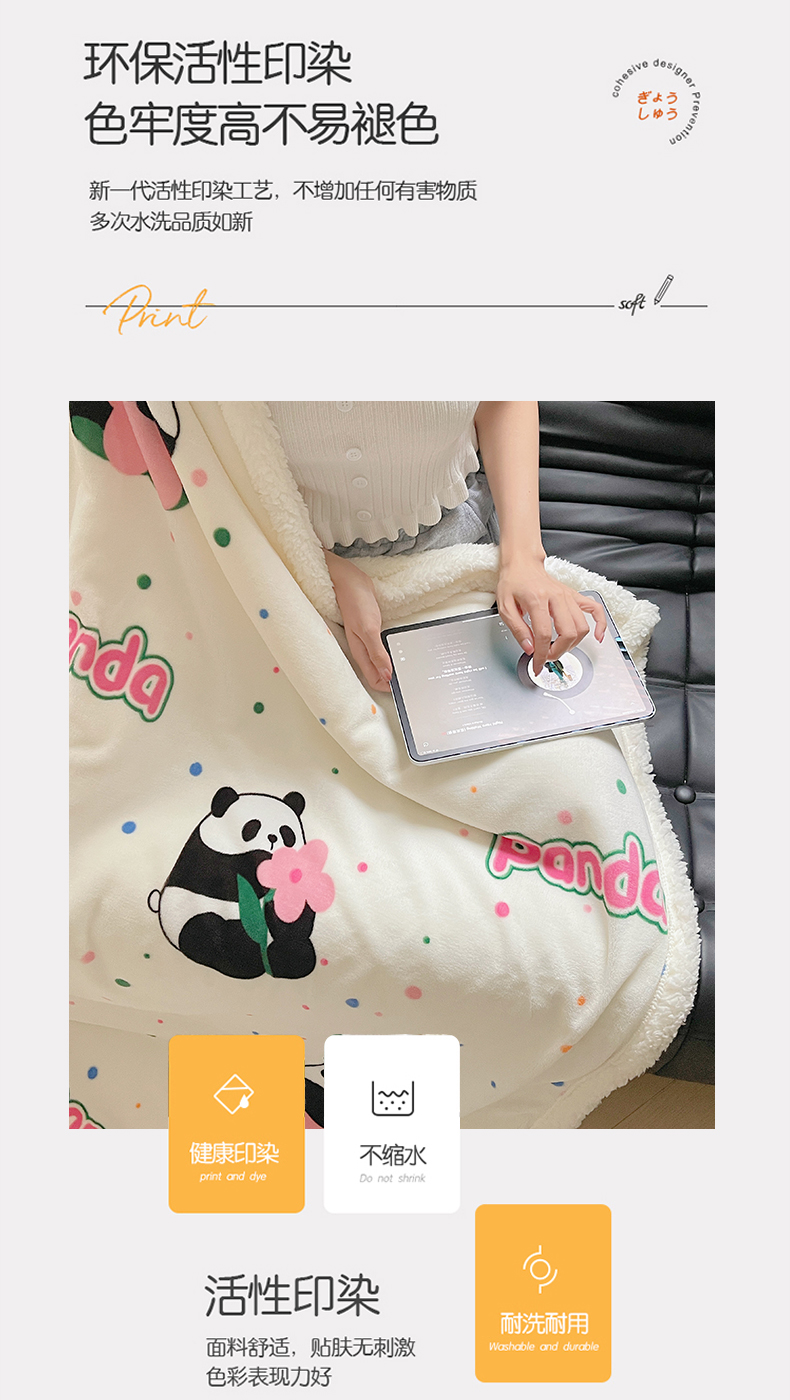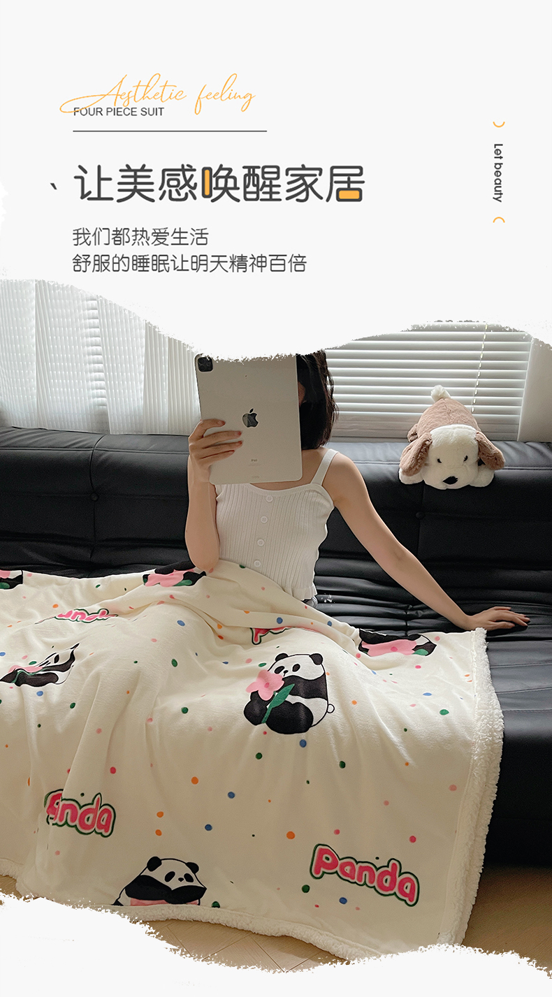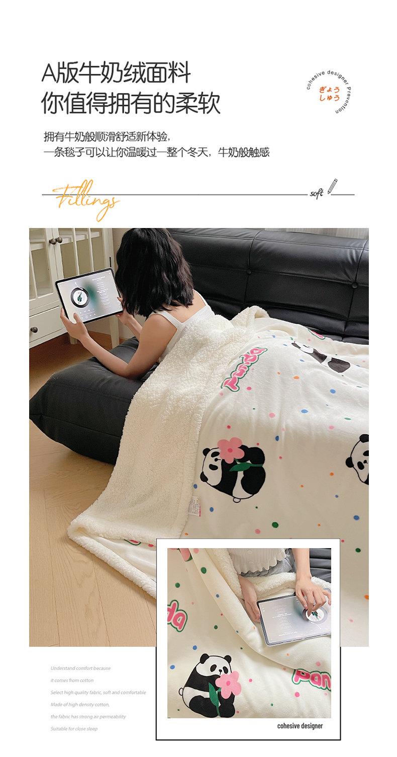 萝莉家纺 2024秋冬新款多功能加厚牛奶绒羊羔绒多功能毛毯 波点熊猫