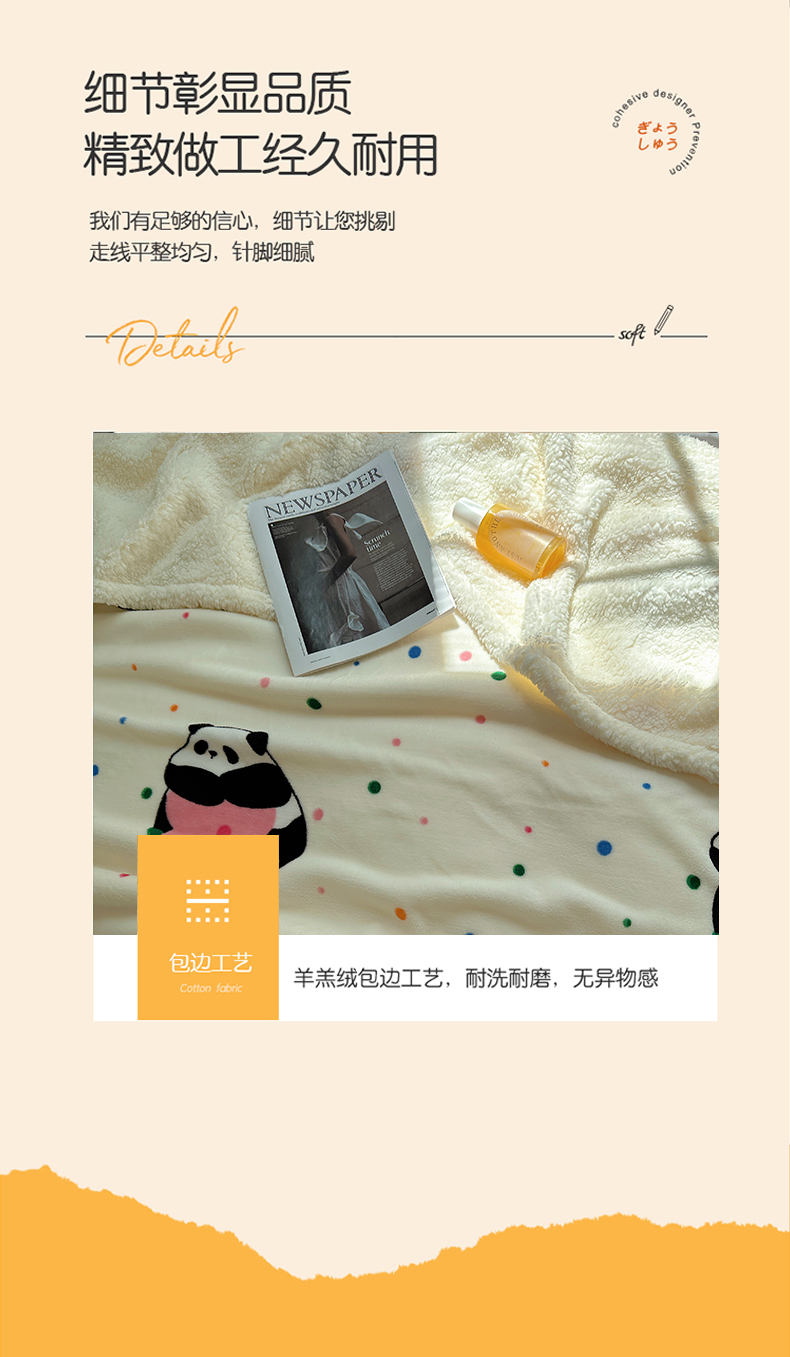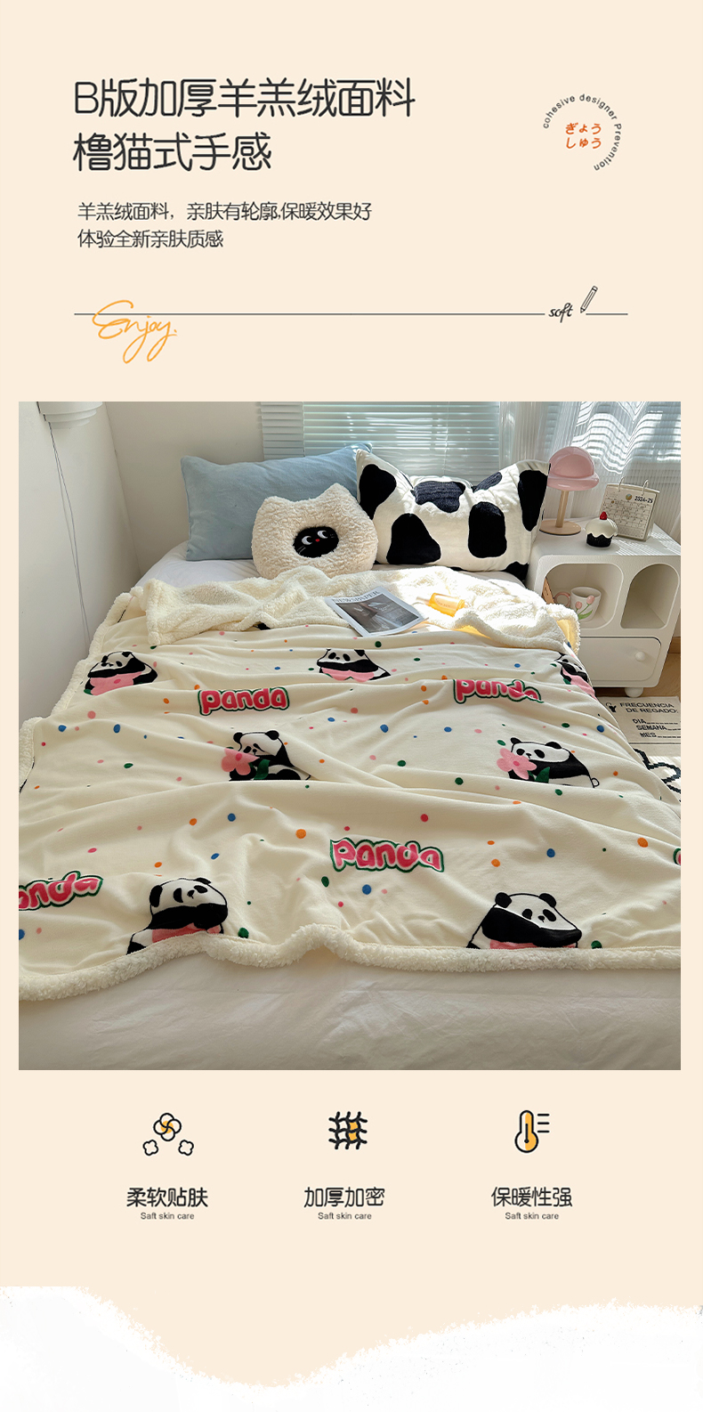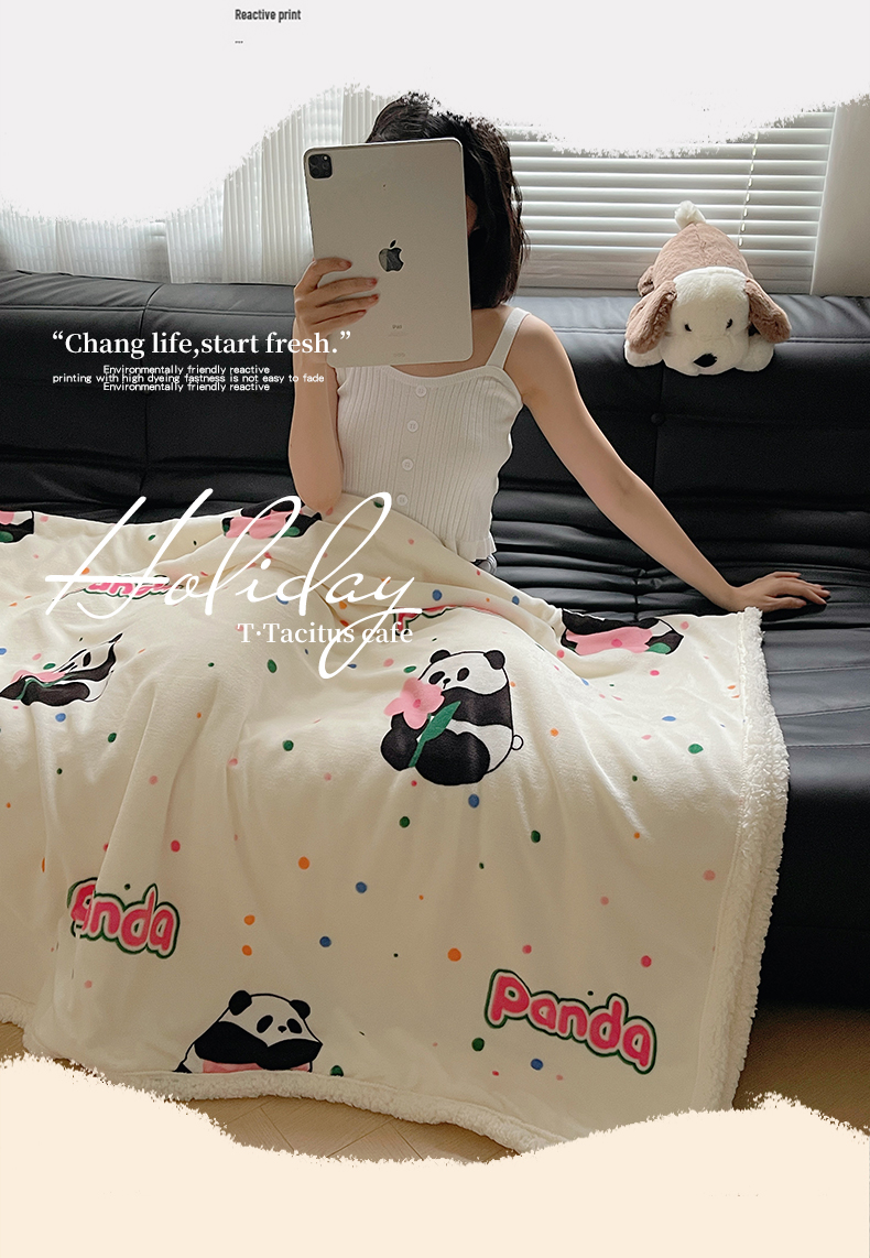 萝莉家纺 2024秋冬新款多功能加厚牛奶绒羊羔绒多功能毛毯 波点熊猫