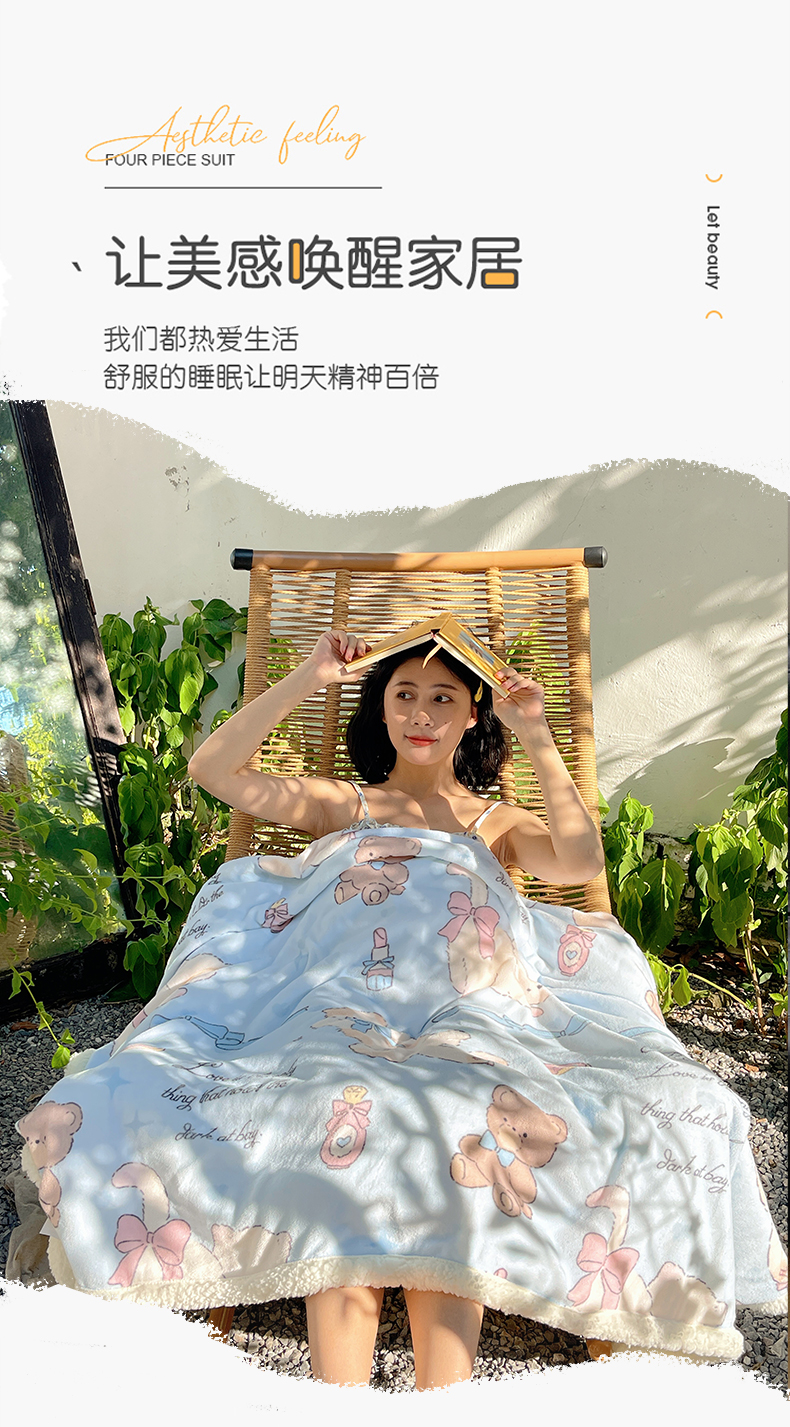 (总)萝莉家纺 2023新款230克高克重软绵绵的泰迪绒四件套,小免蓝,小木马少女粉,小木马水兰,小兔茶粉,小熊奶白,熊豆绿