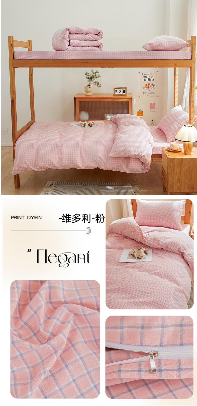 商品名称:棉小二 2024新款全棉水洗棉学生宿舍三四件套 维多利-粉