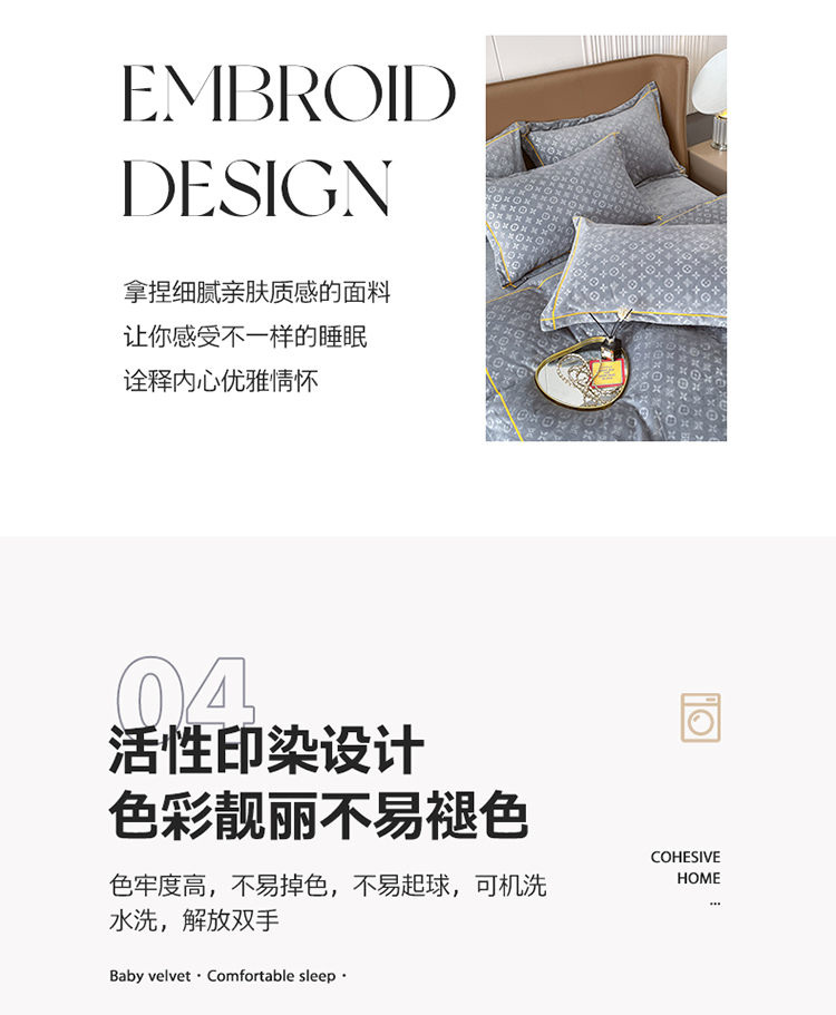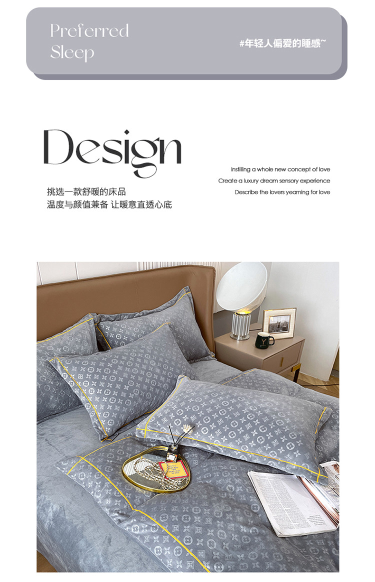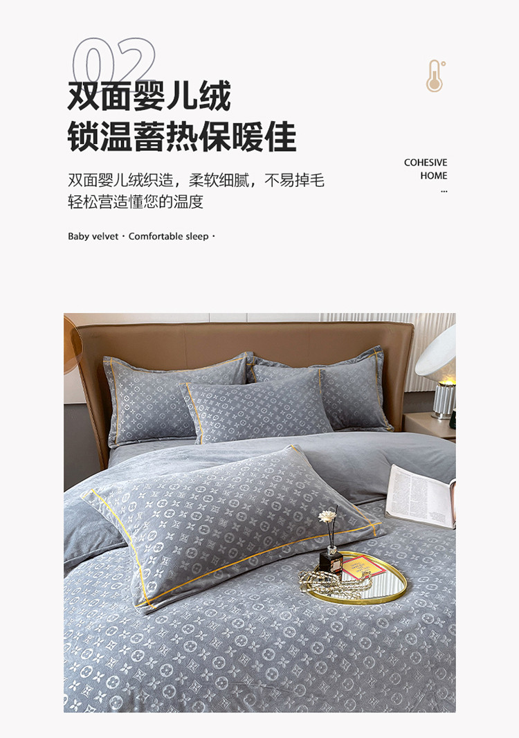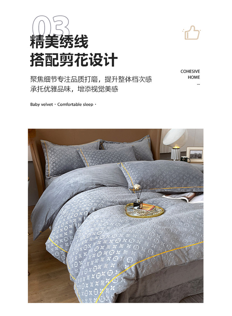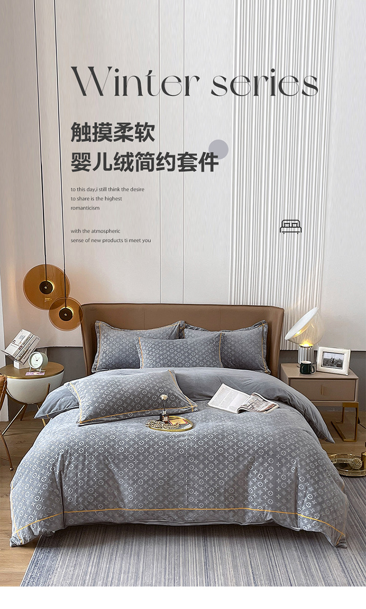 商品名称:(总)老K (原美阁) 2024新款婴儿绒牛奶绒简约绒四件套-路易