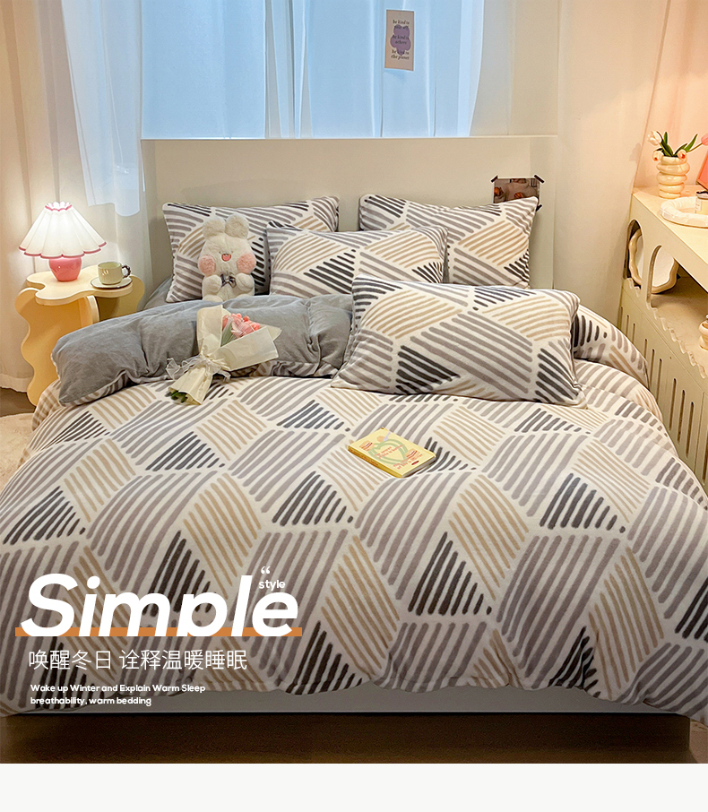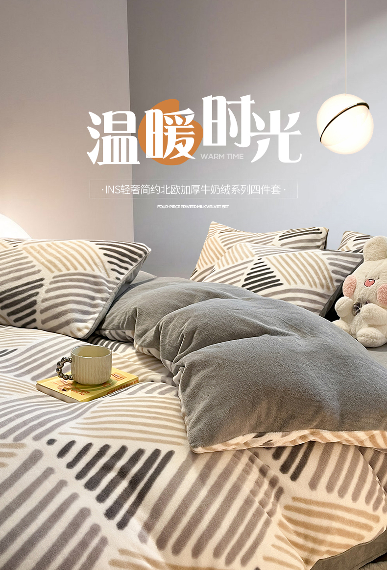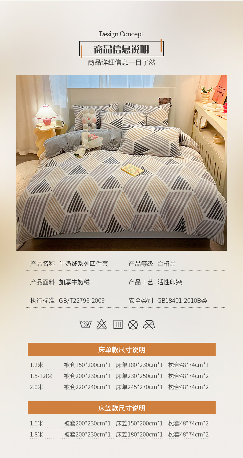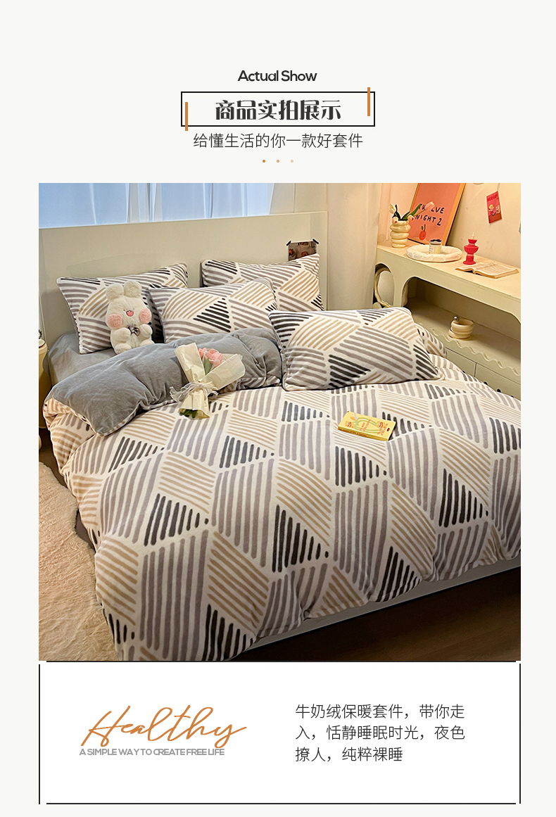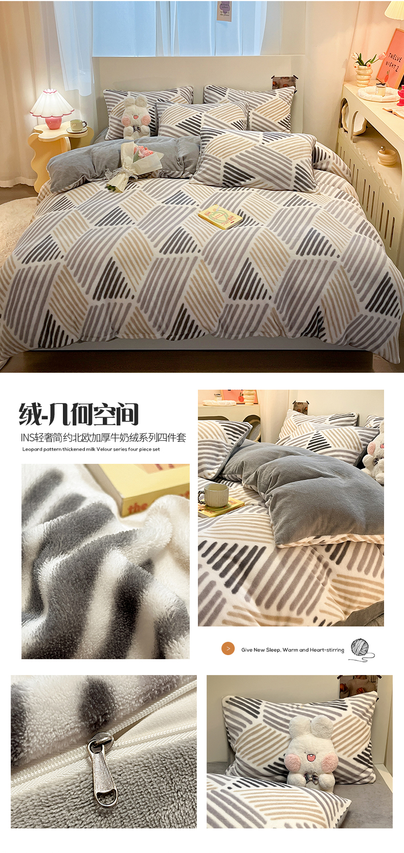 商品名称:2024新款时尚高级经典轻奢北欧简约加厚200克牛奶绒四件套 绒-几何空间