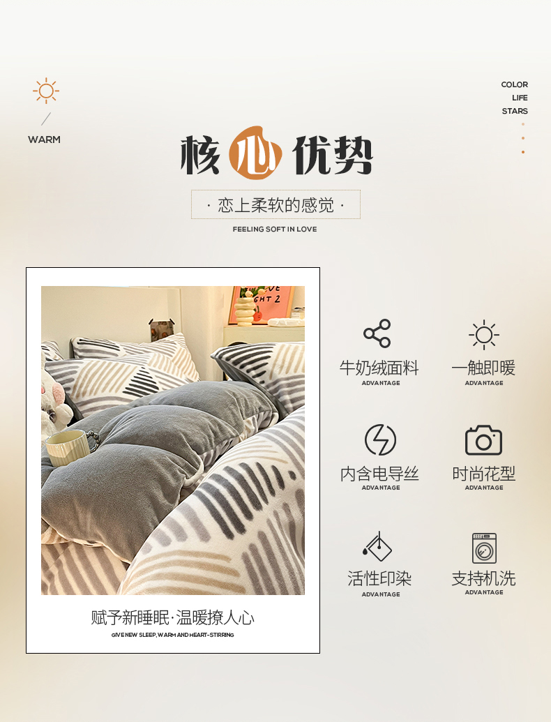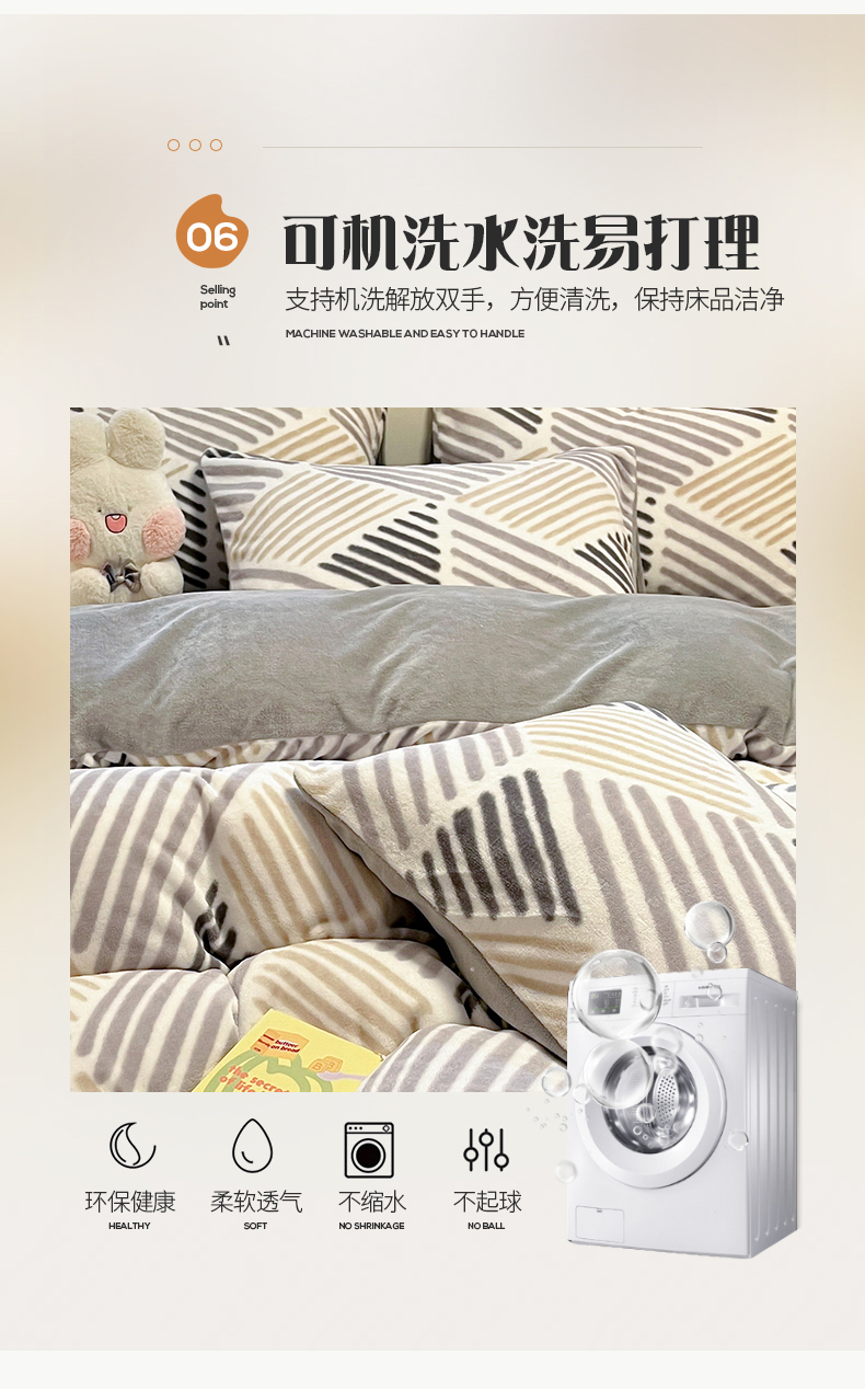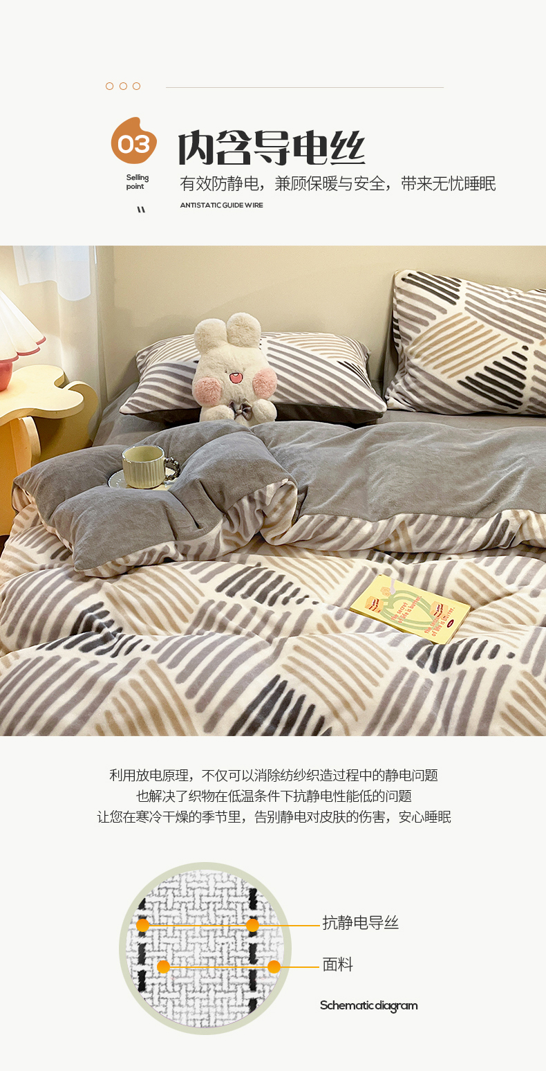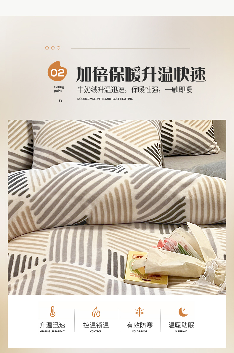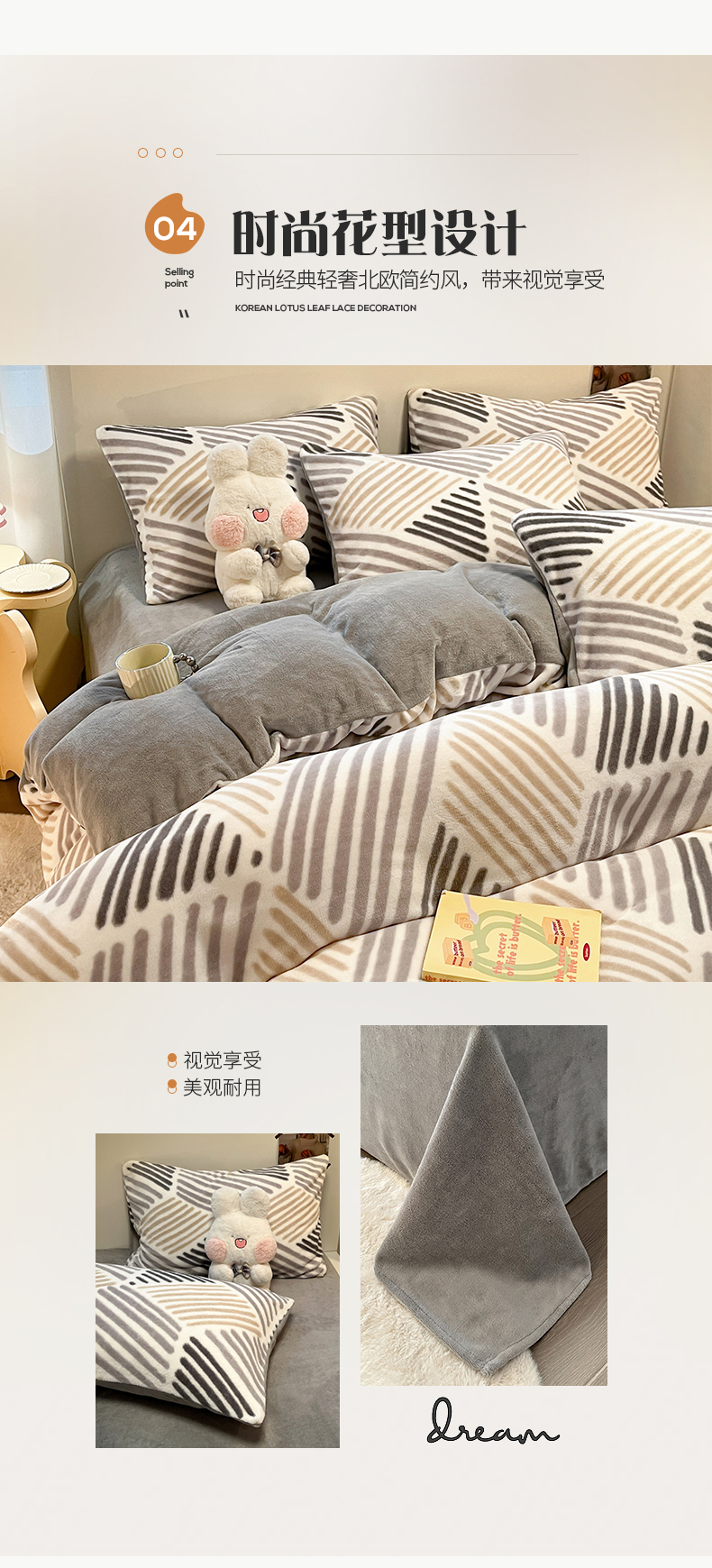 商品名称:2024新款时尚高级经典轻奢北欧简约加厚200克牛奶绒四件套 绒-几何空间