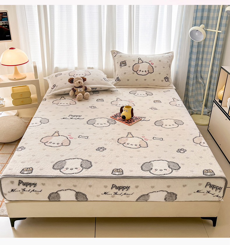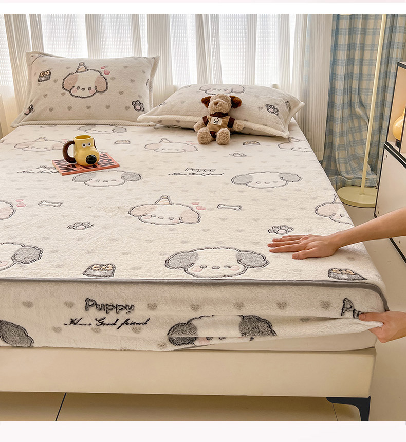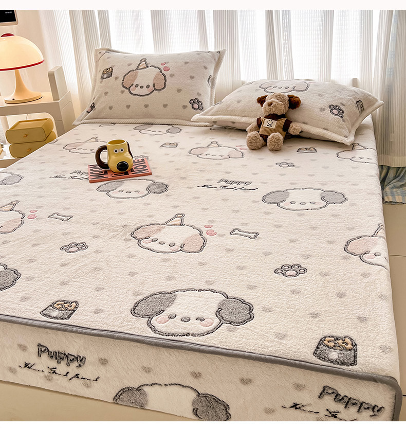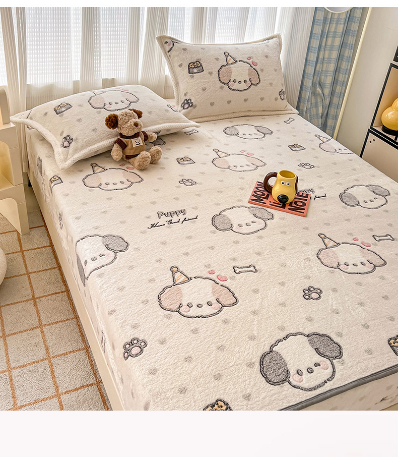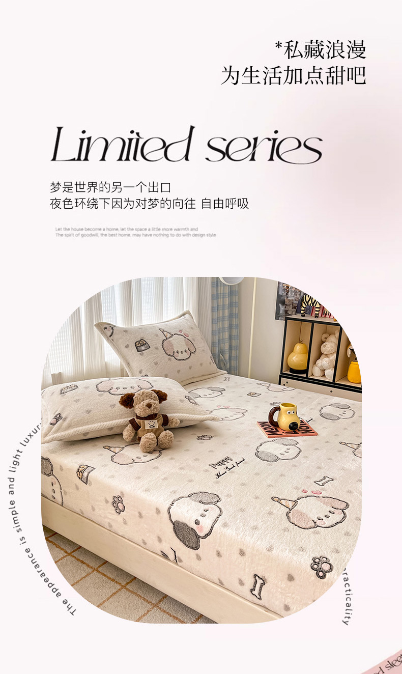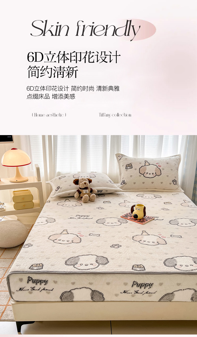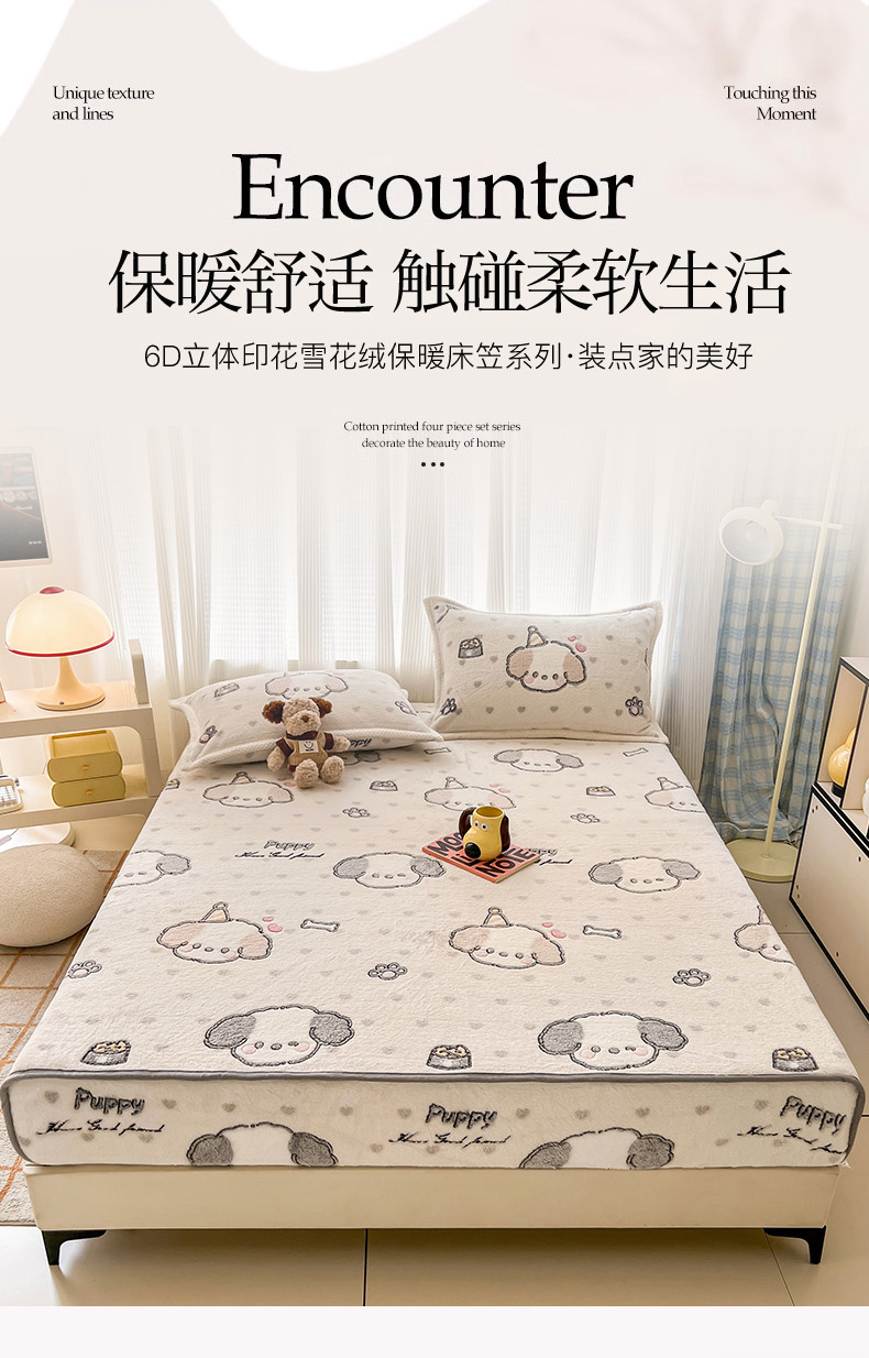 倾慕家纺 2024新款加厚保暖6D立体雪花绒系列-单床笠 礼物小狗