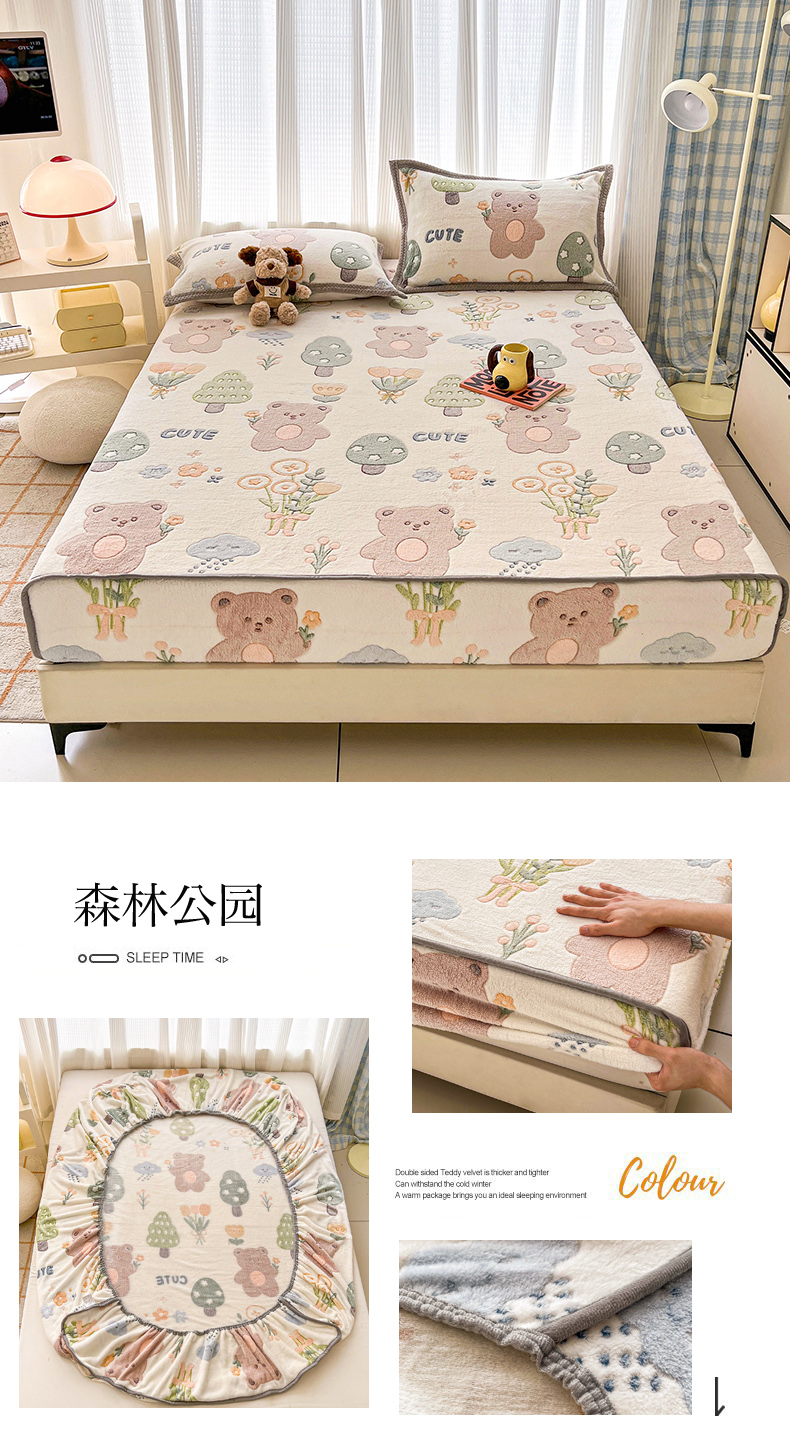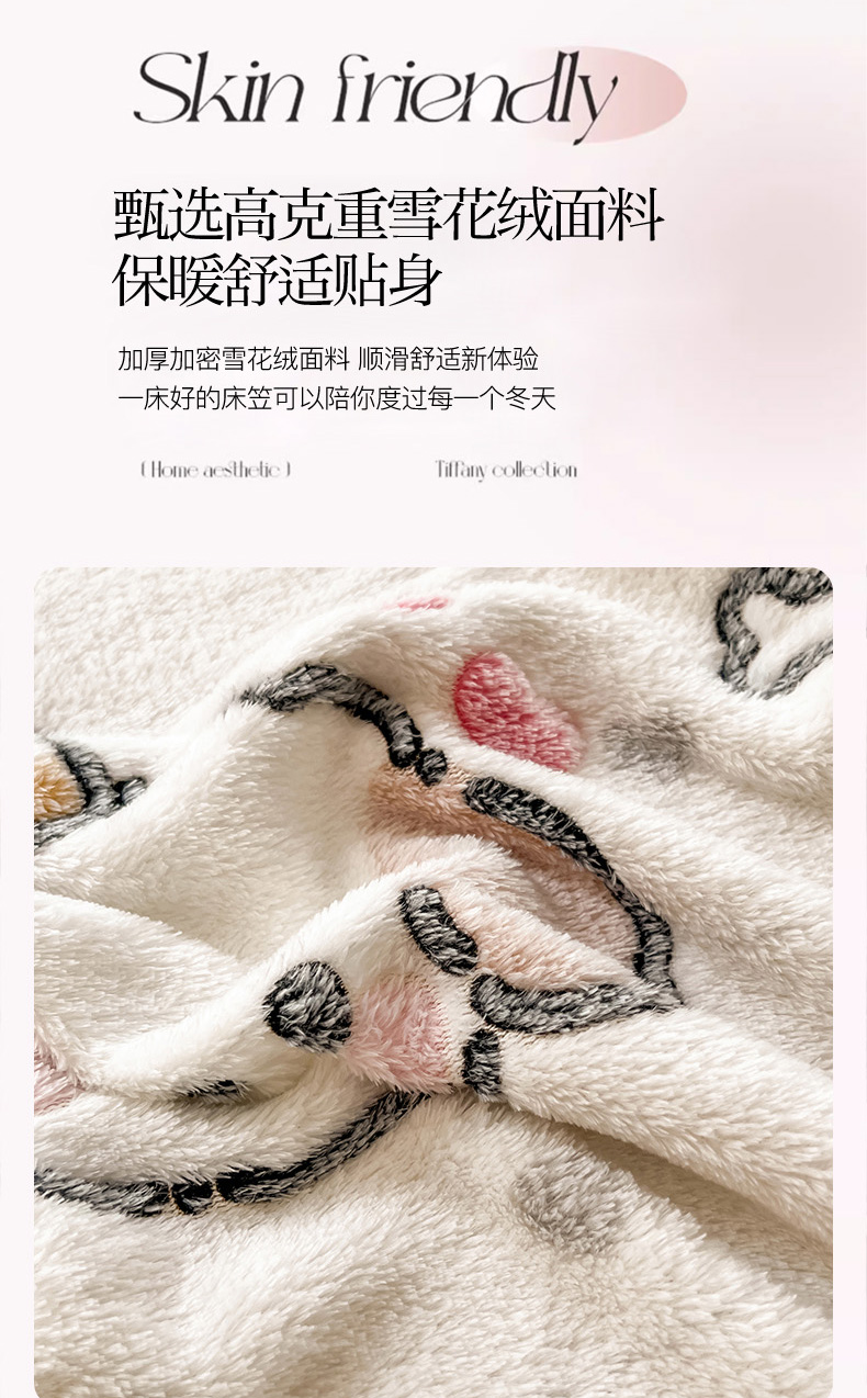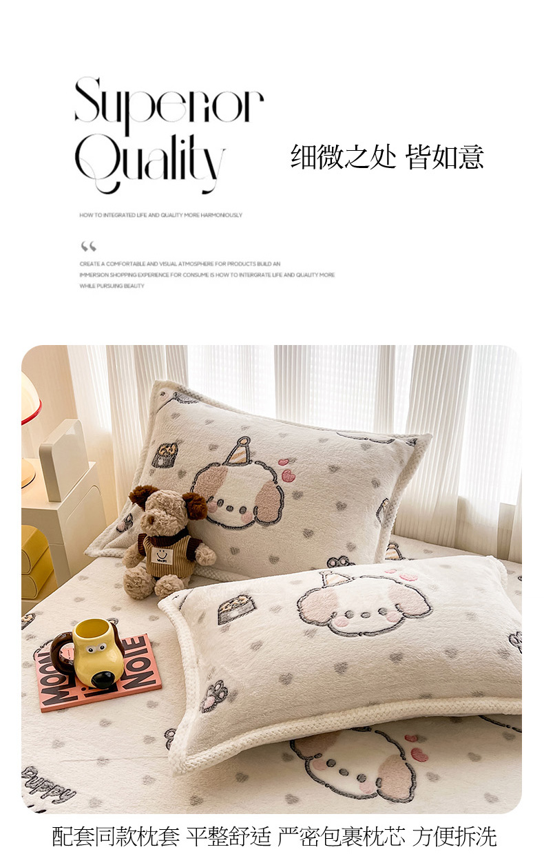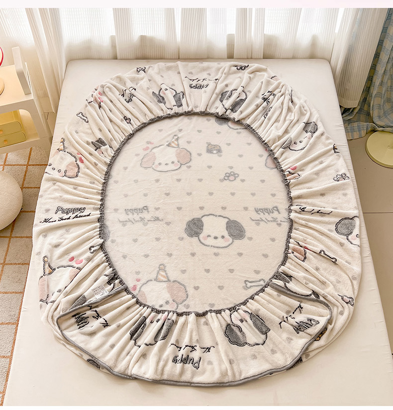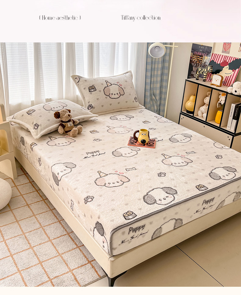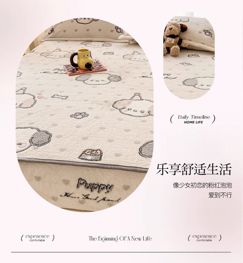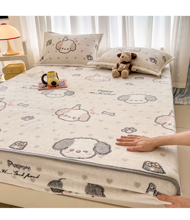 倾慕家纺 2024新款加厚保暖6D立体雪花绒系列-单床笠 礼物小狗