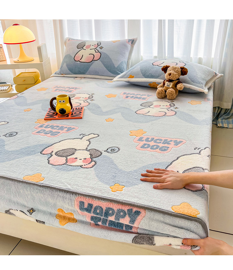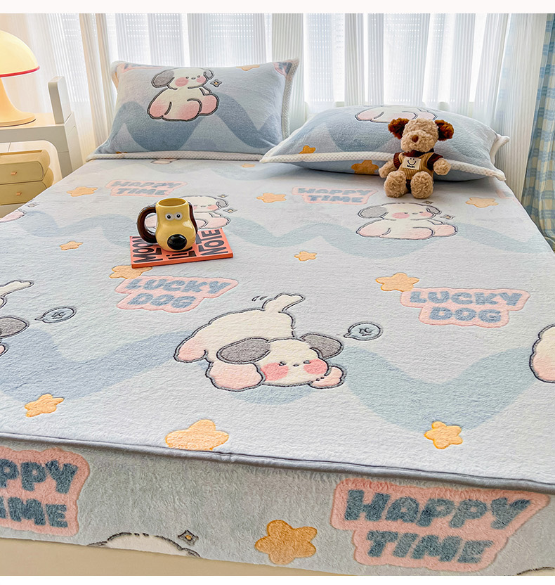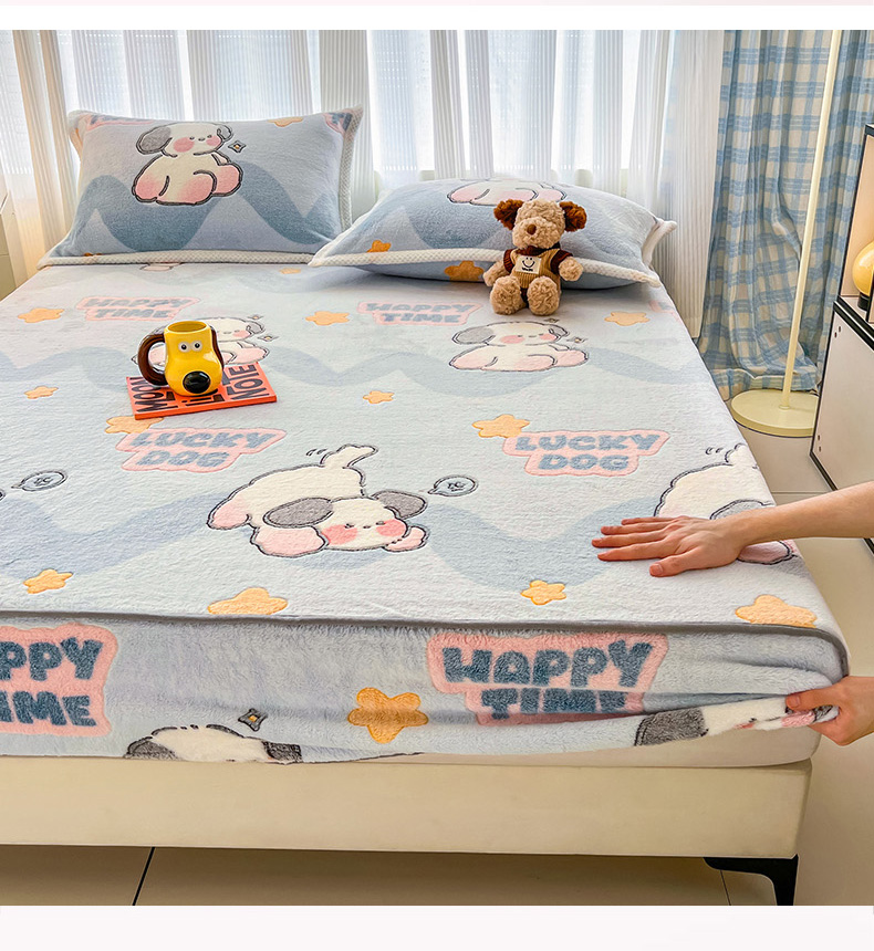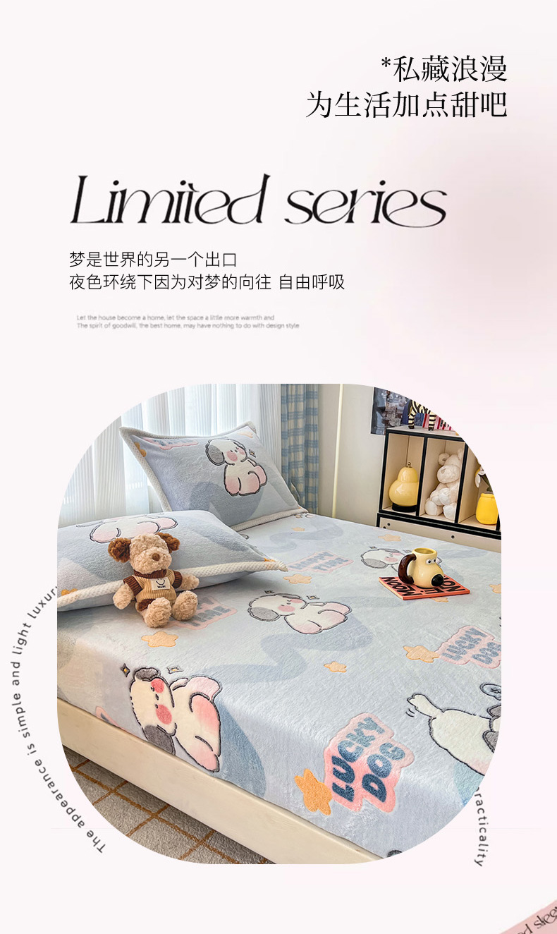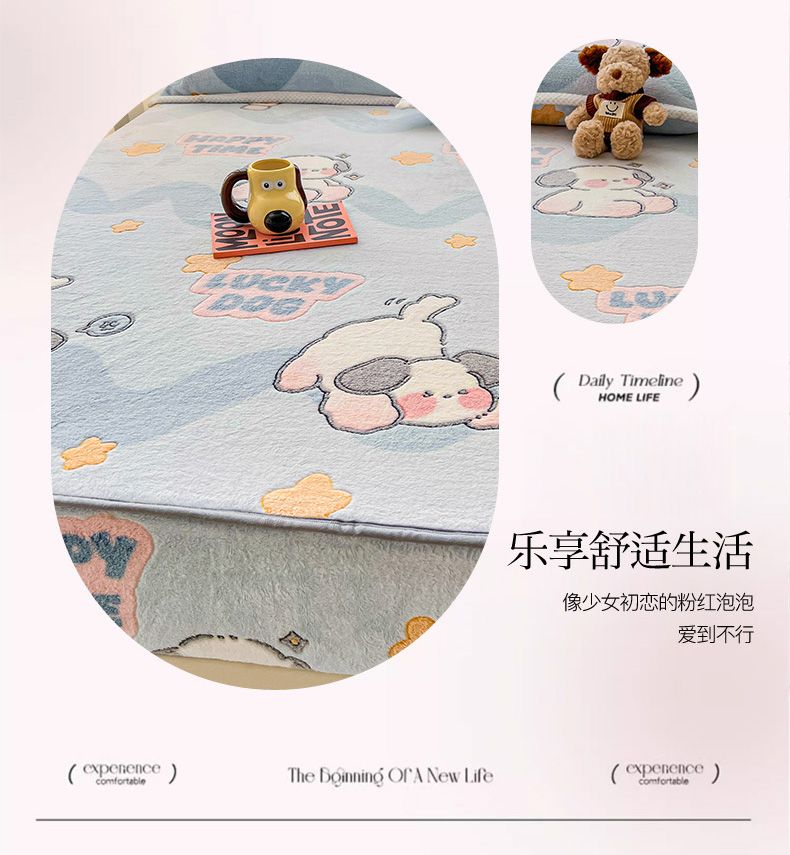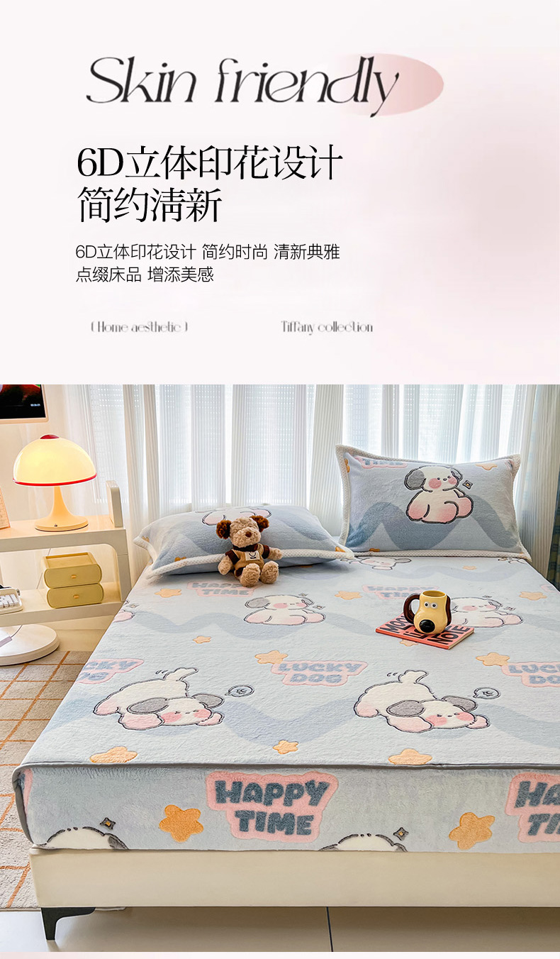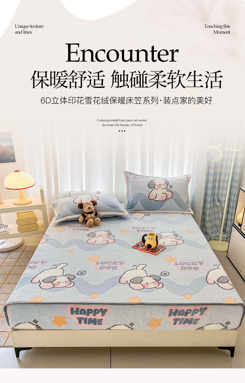 倾慕家纺 2024新款加厚保暖6D立体雪花绒系列-单床笠 时光小狗
