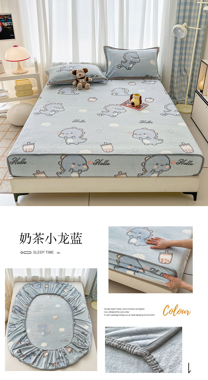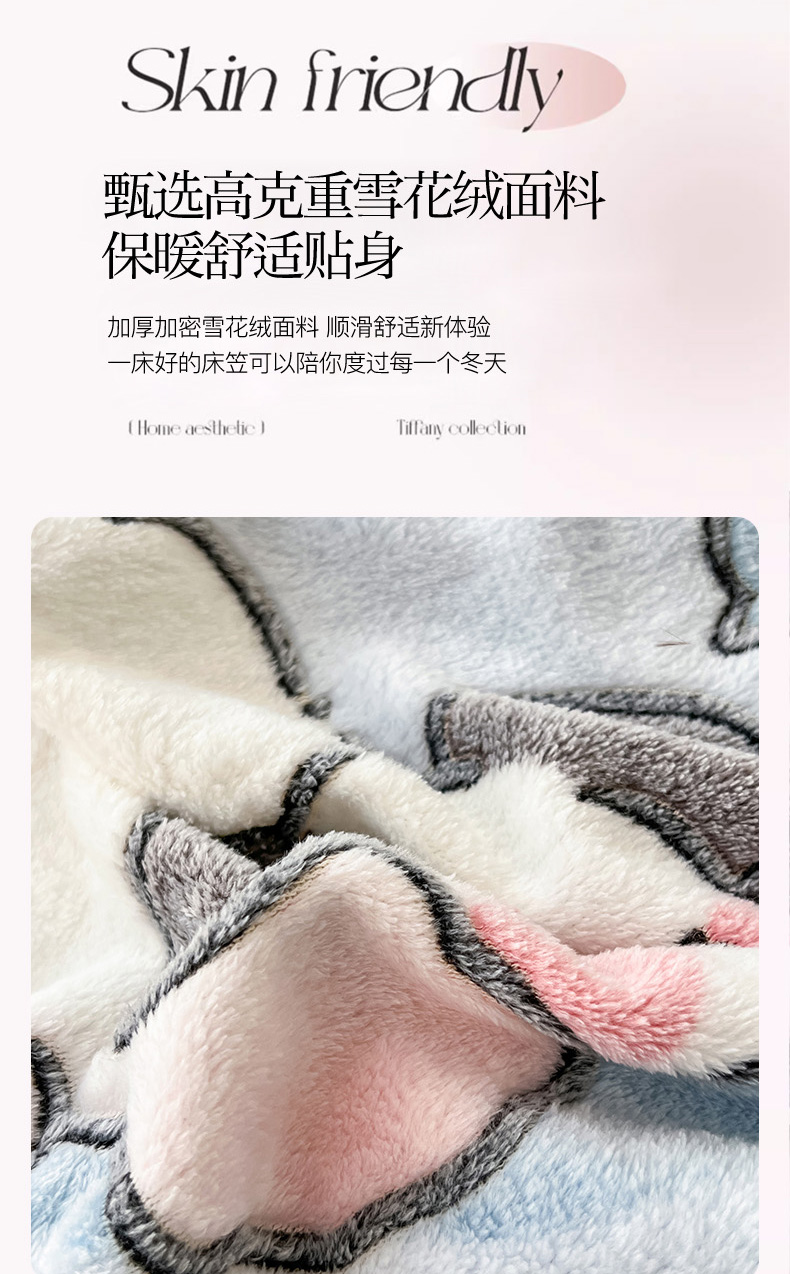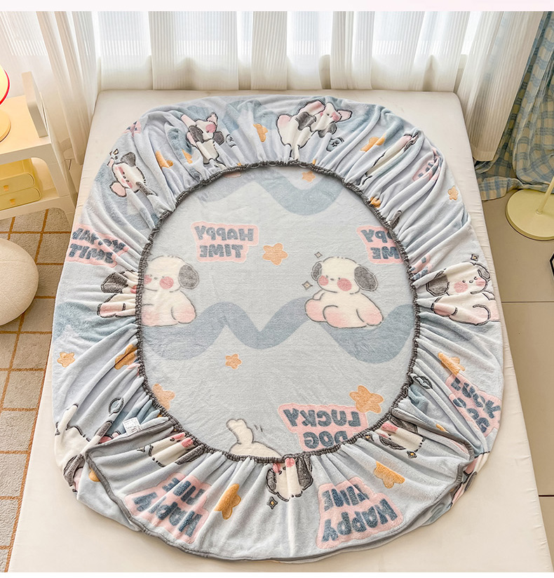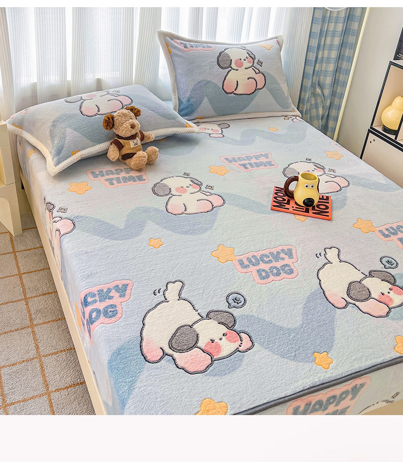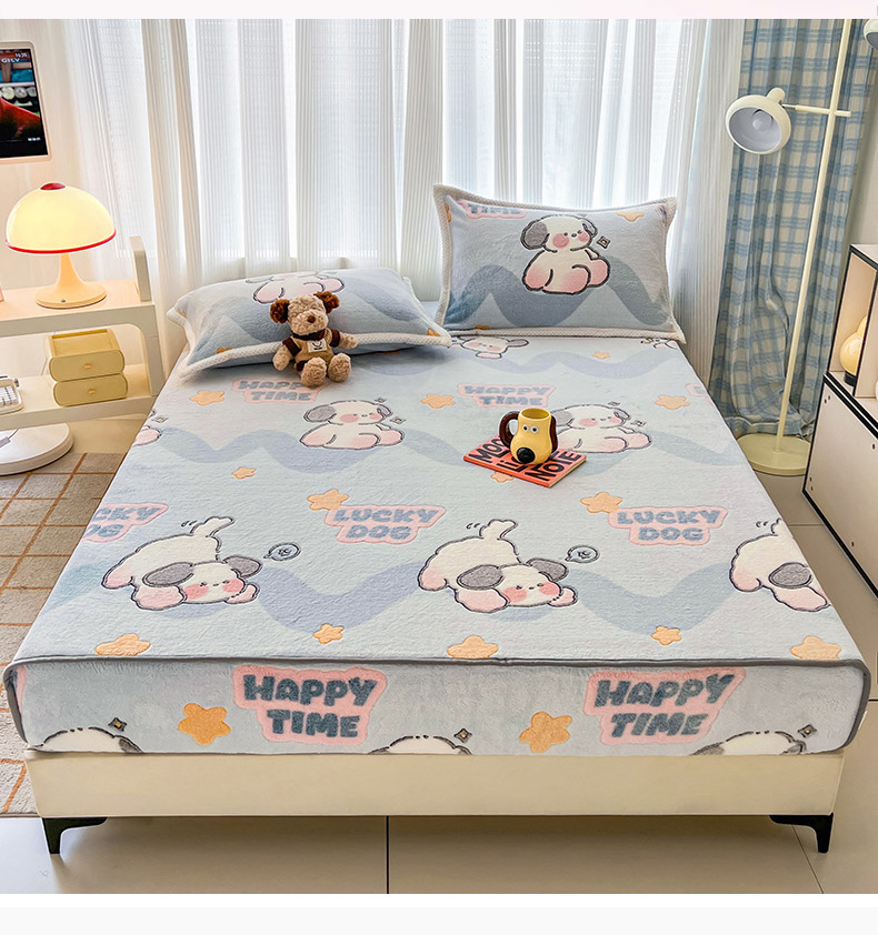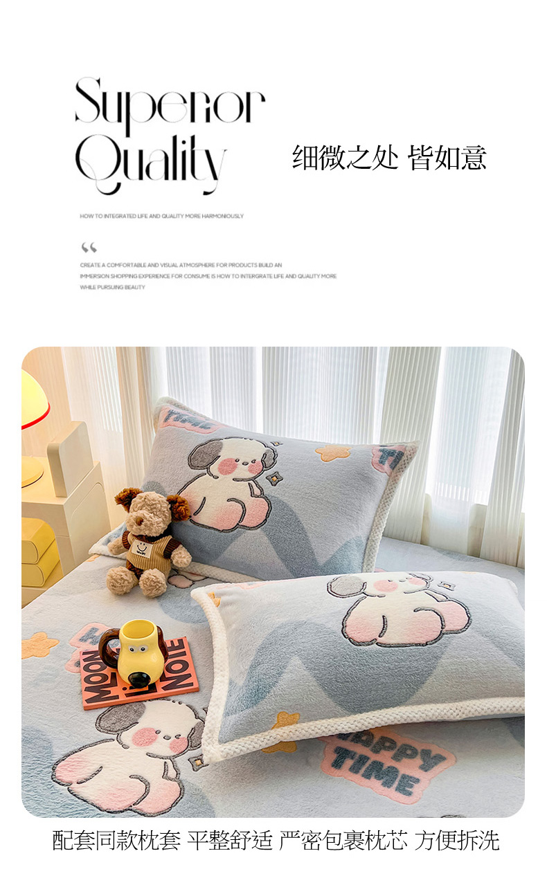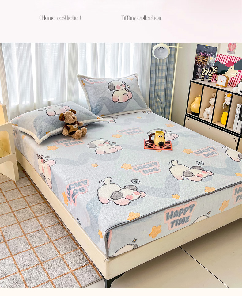 倾慕家纺 2024新款加厚保暖6D立体雪花绒系列-单床笠 时光小狗