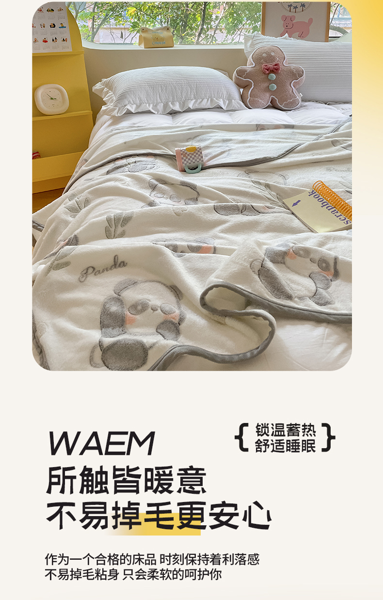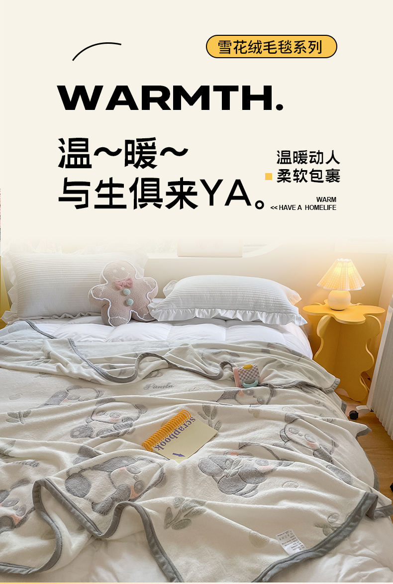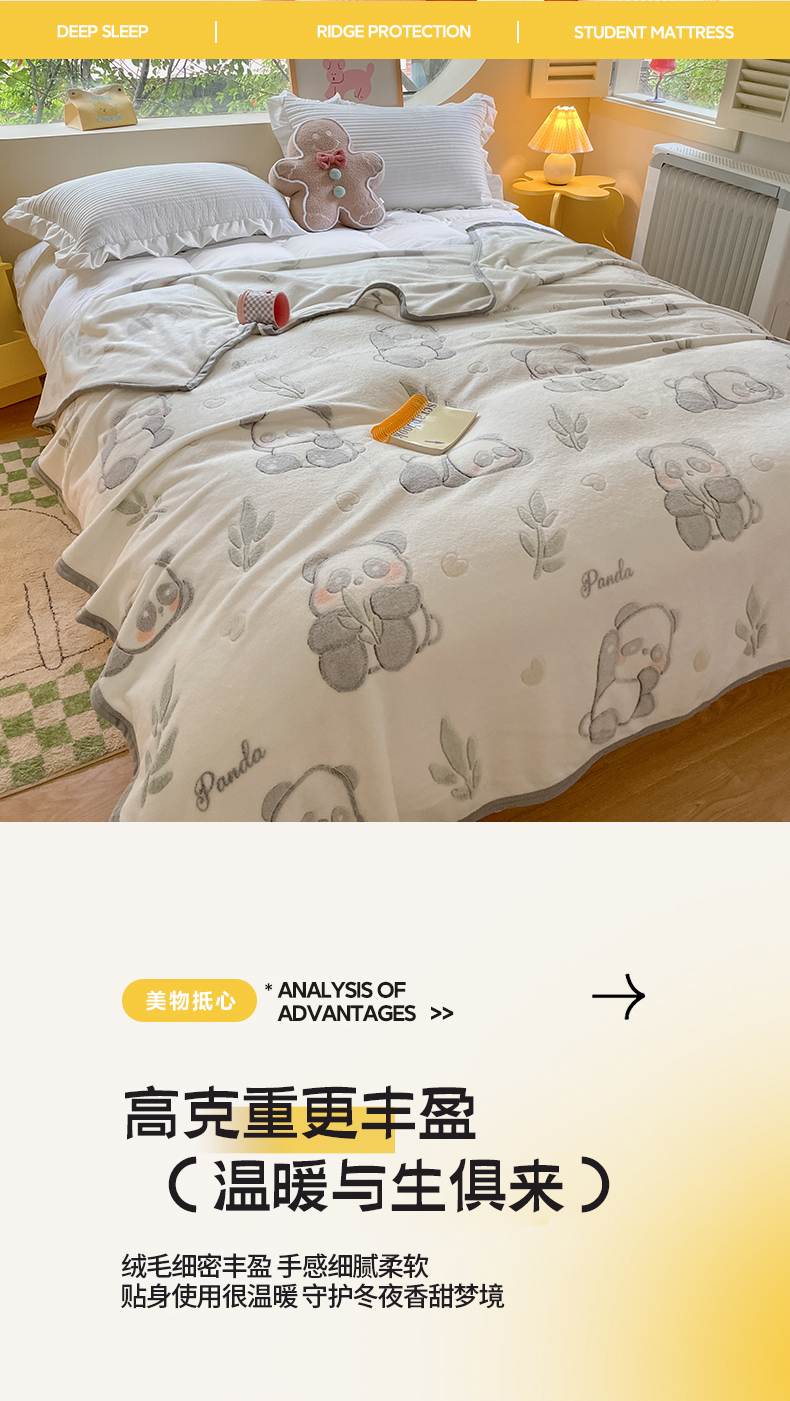 慕尚家纺 2025新款高克重加厚雪花绒毛毯毯子 黑白熊
