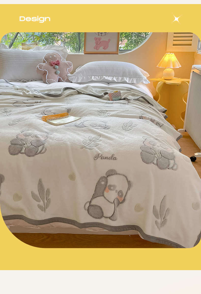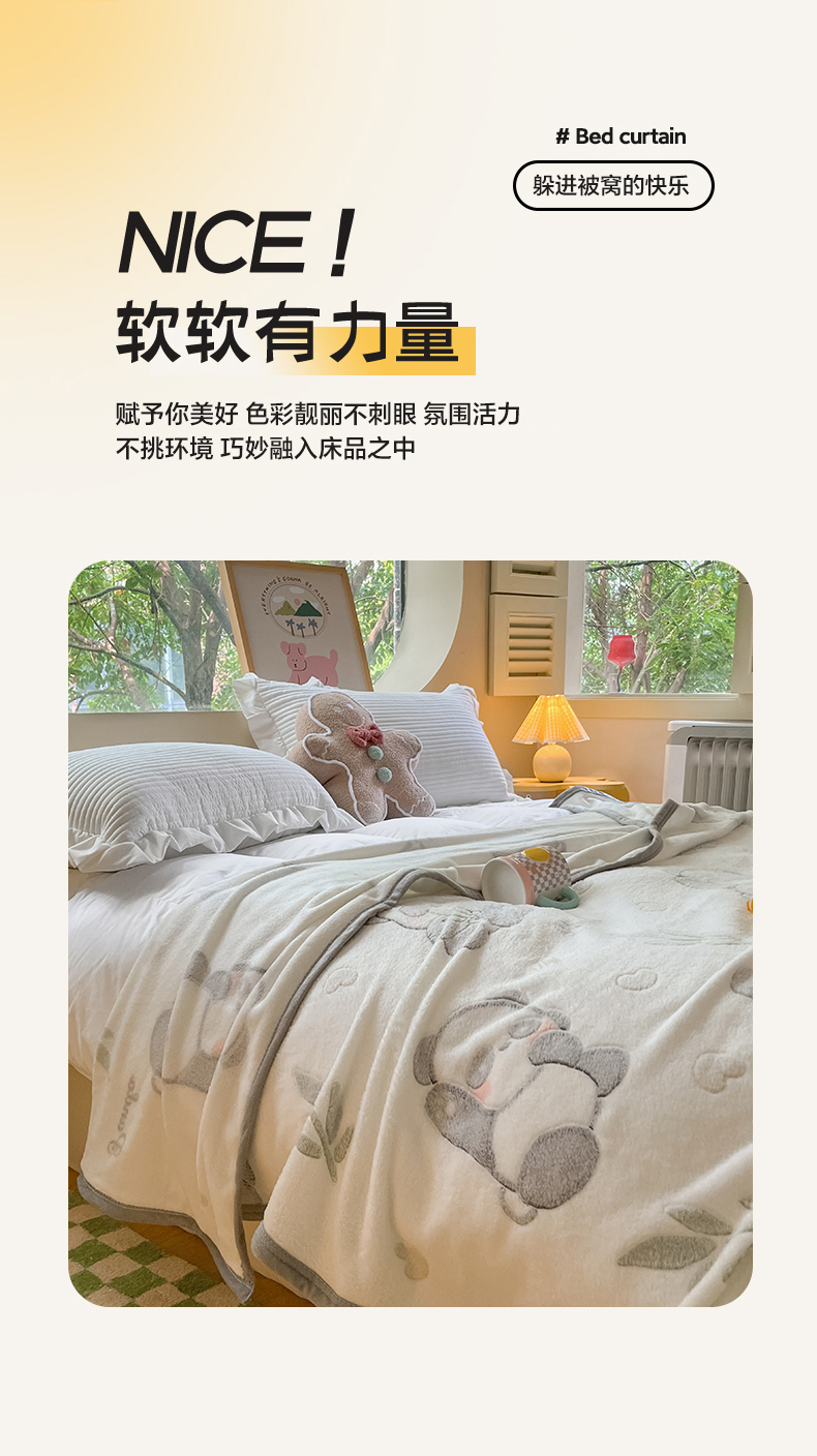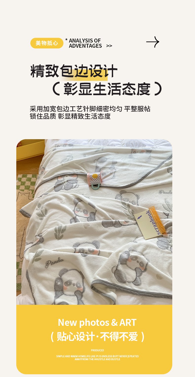 慕尚家纺 2025新款高克重加厚雪花绒毛毯毯子 黑白熊