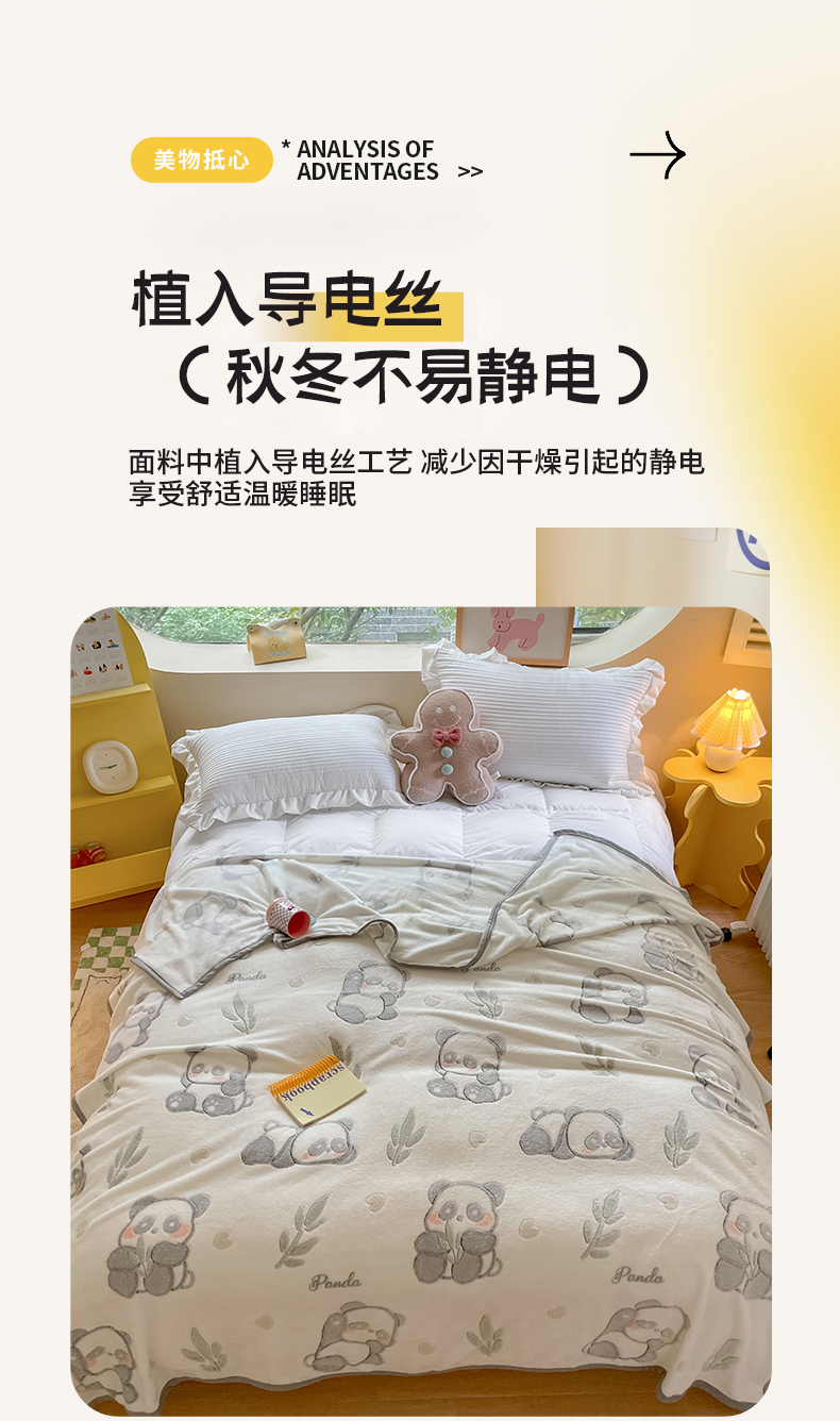 商品名称:慕尚家纺 2025新款高克重加厚雪花绒毛毯毯子 黑白熊