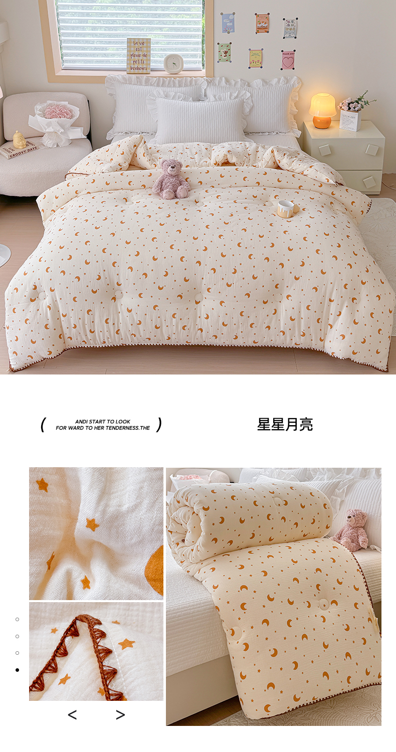 • 91家纺网 家纺一手货源 找家纺 芯恋家居 2025新款秋冬款母婴级全棉皱皱双层纱大豆被春秋被加厚大豆被 星星月亮