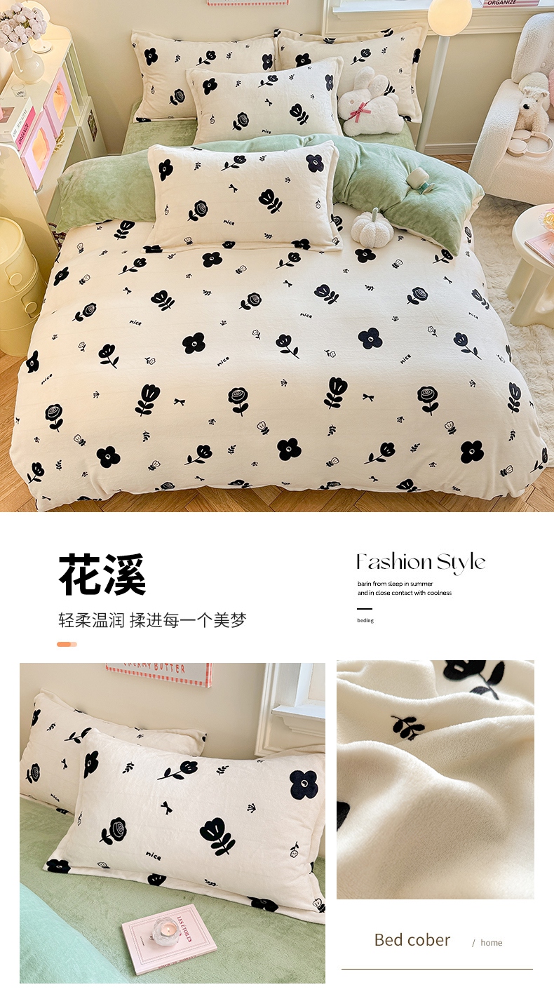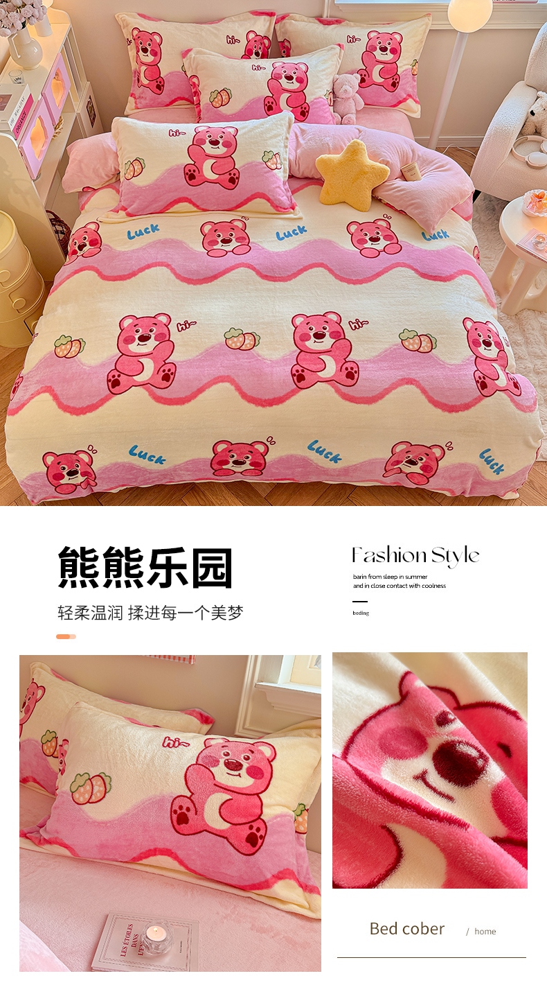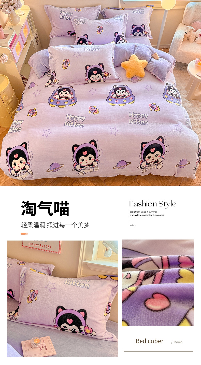 (总)名兮 2024新款卡通时尚风高克重牛奶绒四件套