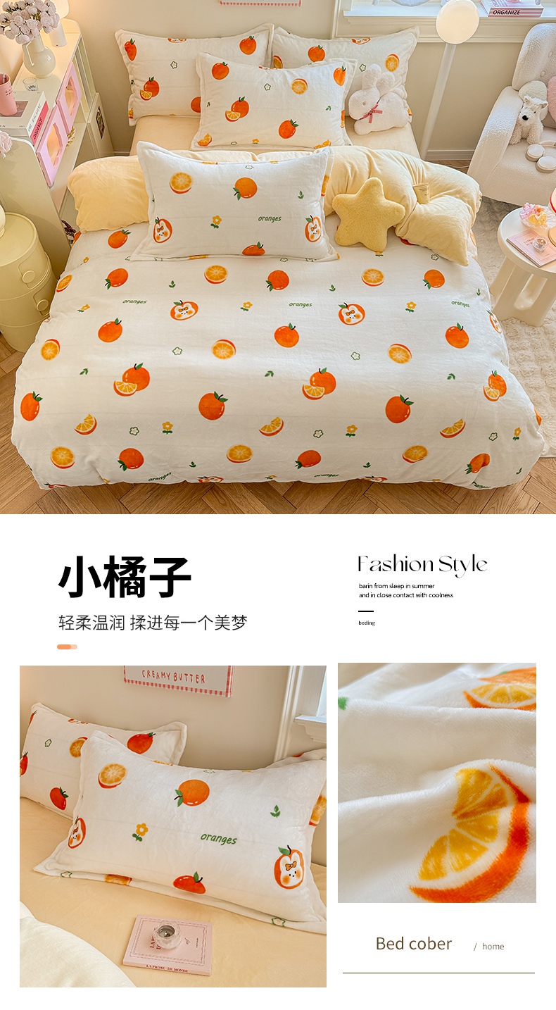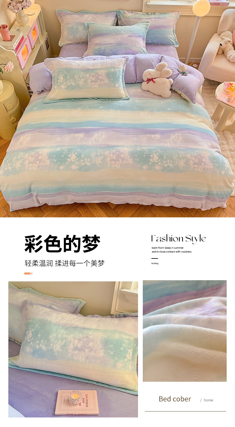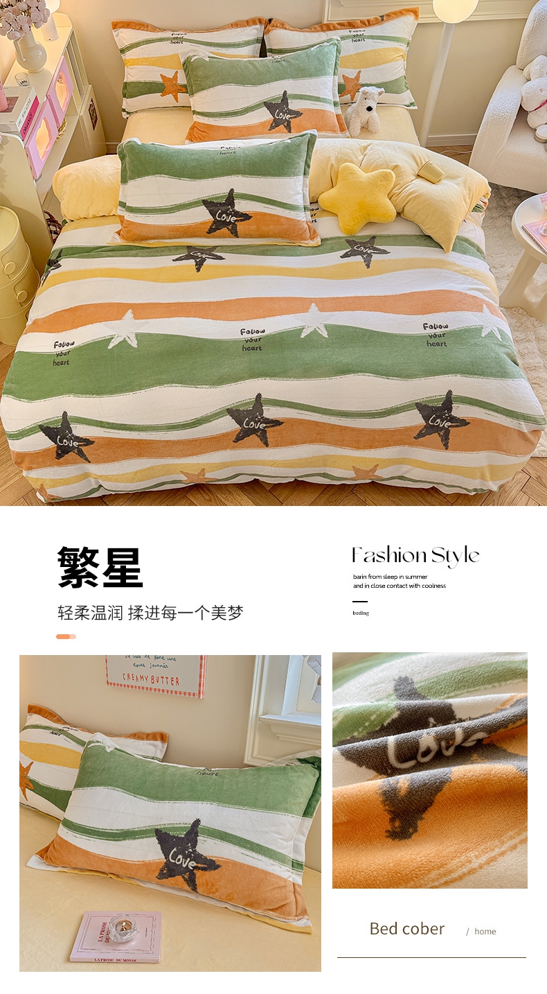 (总)名兮 2024新款卡通时尚风高克重牛奶绒四件套