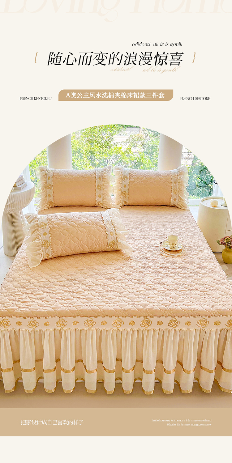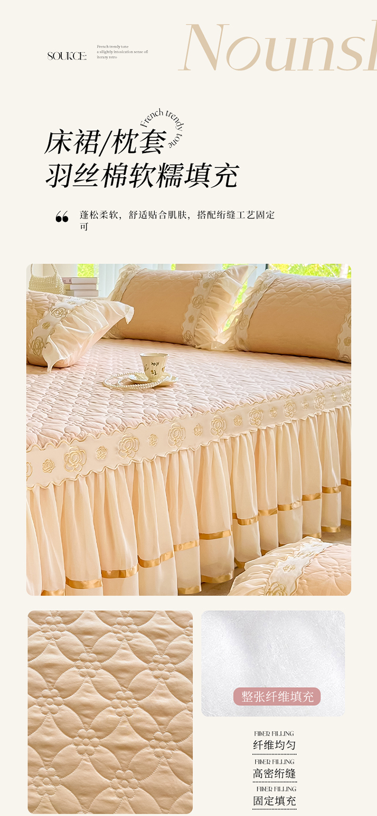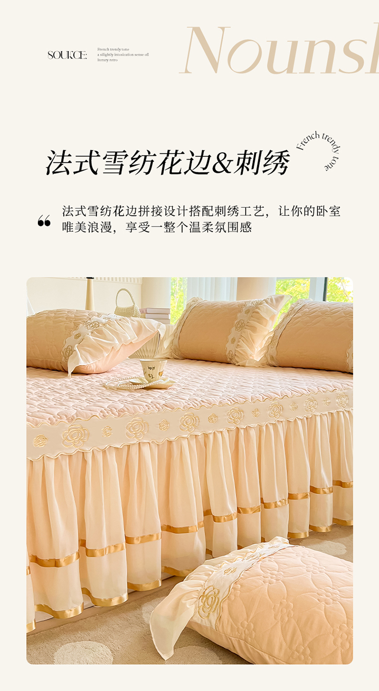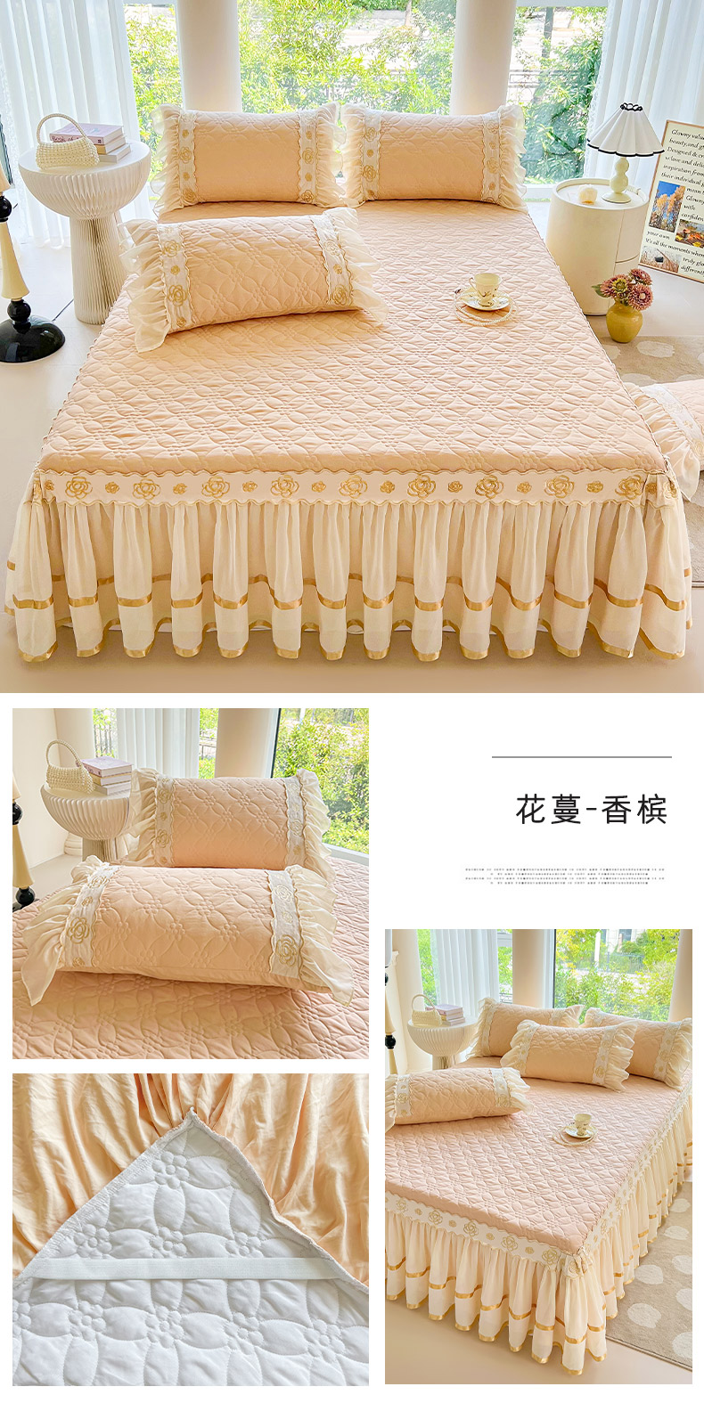商品名称:罗艺轩 2024新款公主风水洗棉夹棉床裙-花蔓花蔓-香槟