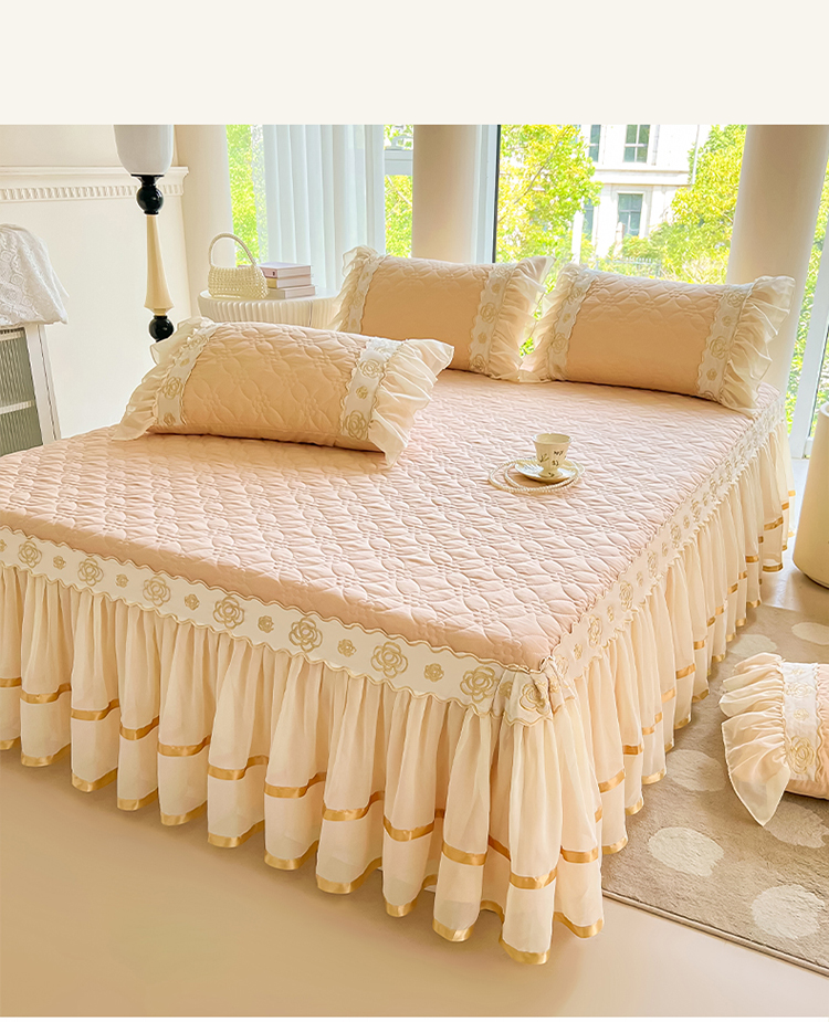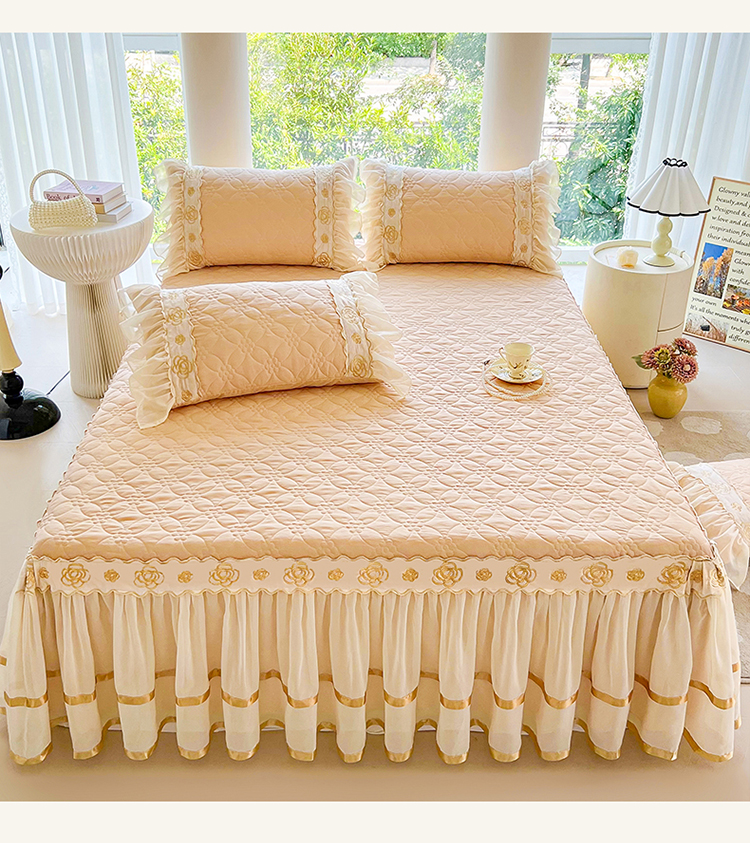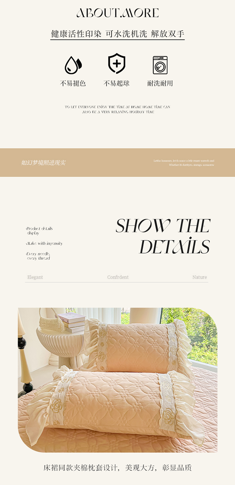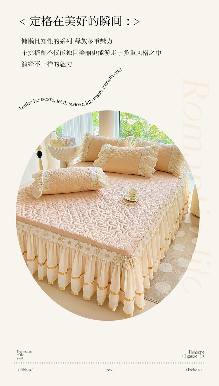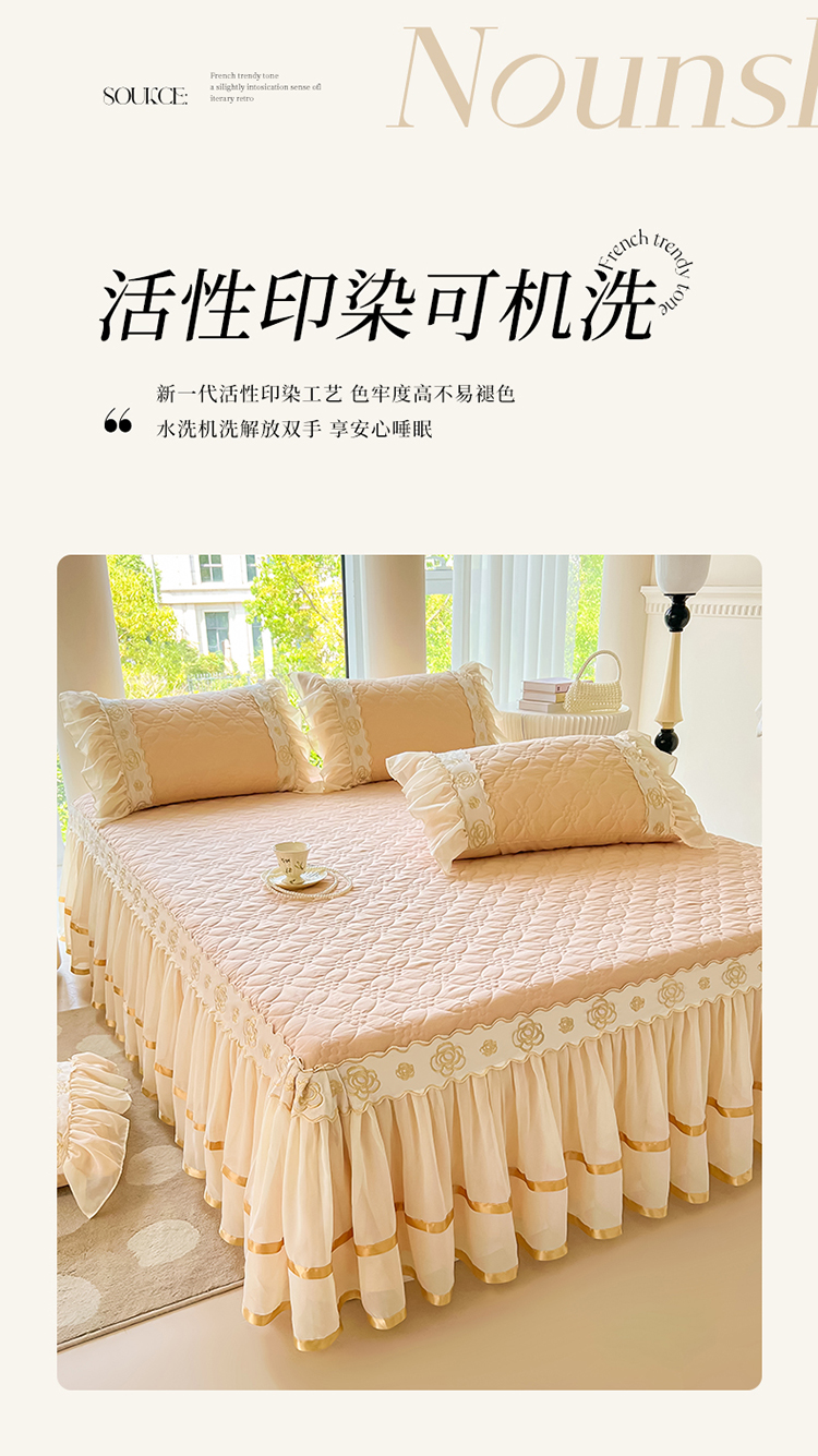 商品名称:罗艺轩 2024新款公主风水洗棉夹棉床裙-花蔓花蔓-香槟