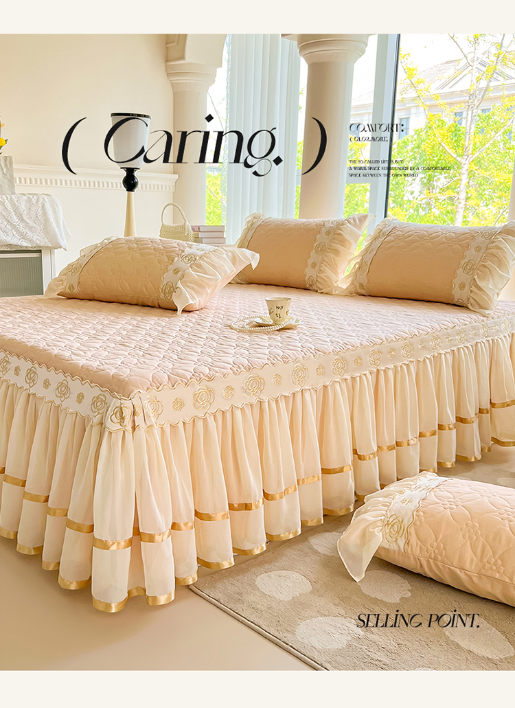 罗艺轩 2024新款公主风水洗棉夹棉床裙-花蔓花蔓-香槟