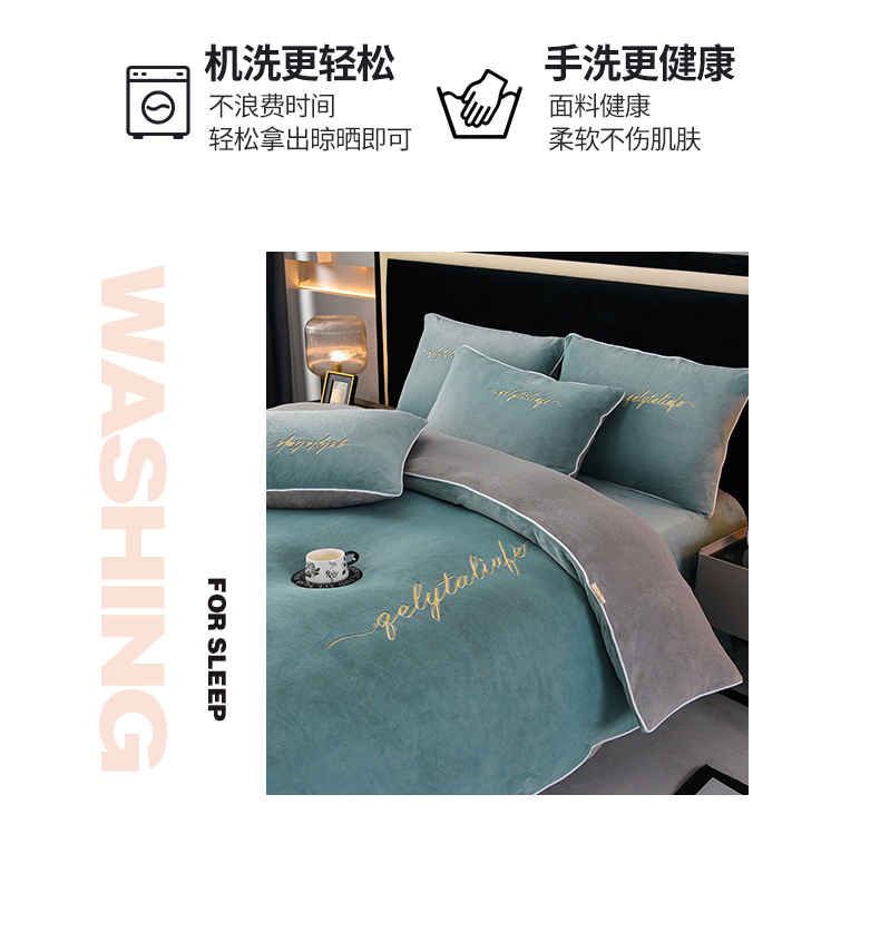 (总)氧家 2025新款高克重牛奶绒拼角刺绣床单床笠床盖款四件套-经典,经典-蓝,经典-橙,经典-豆沙,经典-灰,经典-绿,经典-奶白,经典-紫,经典-棕