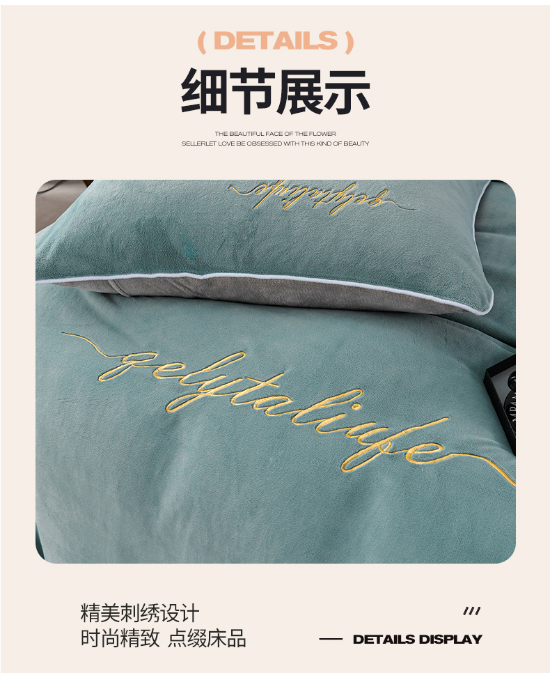 (总)氧家 2025新款高克重牛奶绒拼角刺绣床单床笠床盖款四件套-钟爱,钟爱-白,钟爱-橙,钟爱-豆沙,钟爱-灰,钟爱-蓝,钟爱-绿,钟爱-紫,钟爱-棕