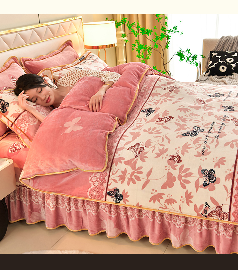 沐妍家纺 2024新款7斤牛奶法莱绒金貂绒印花四件套 蝶恋