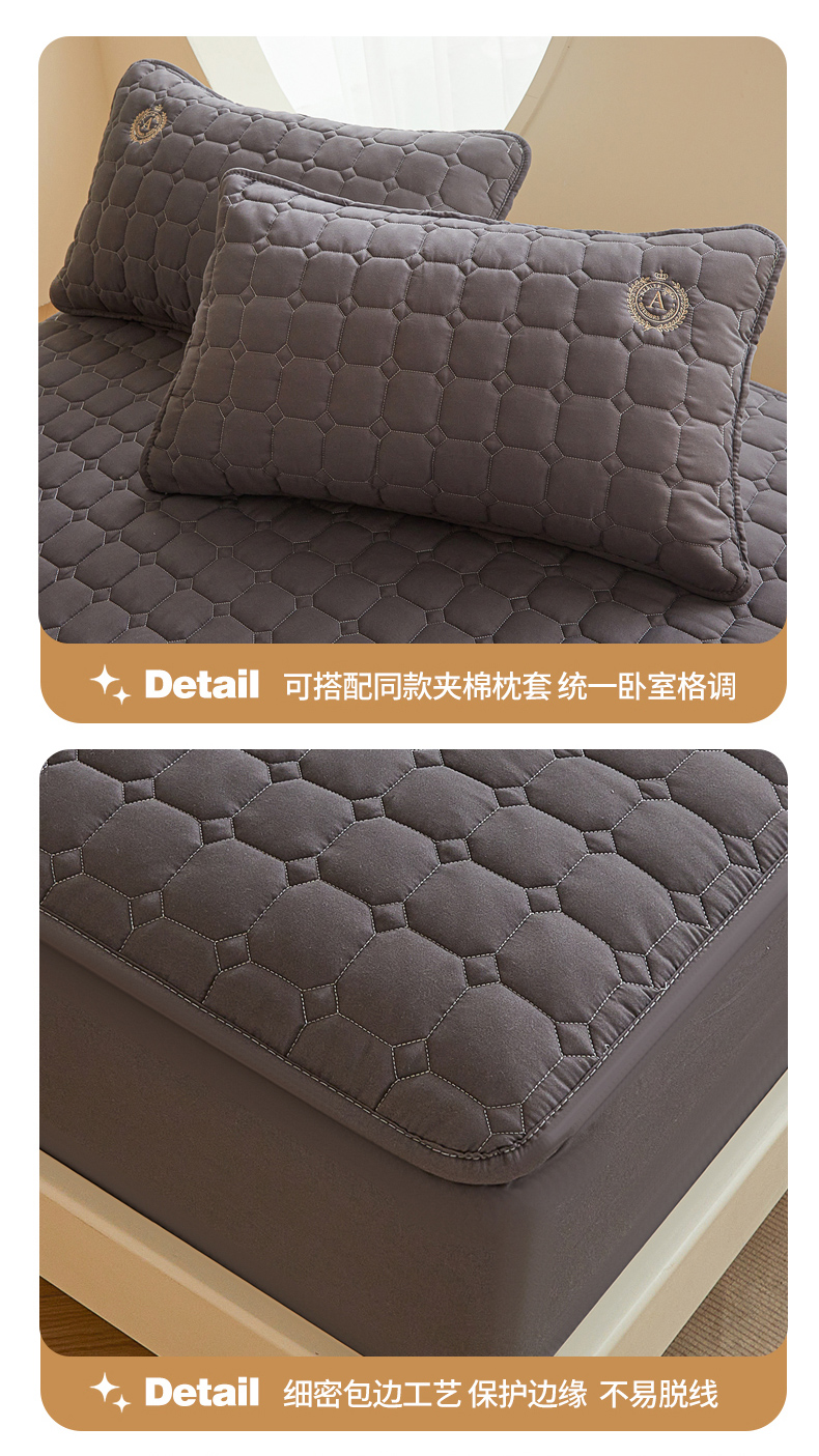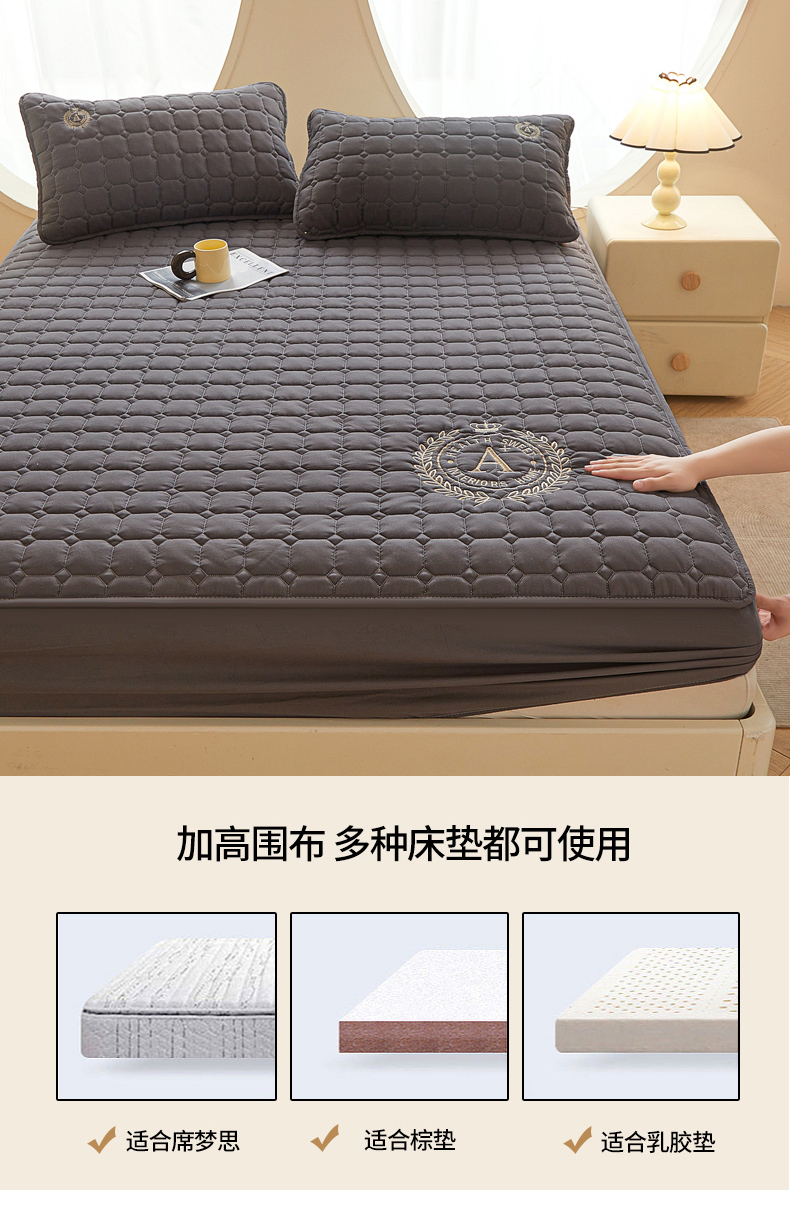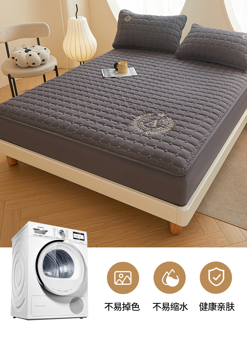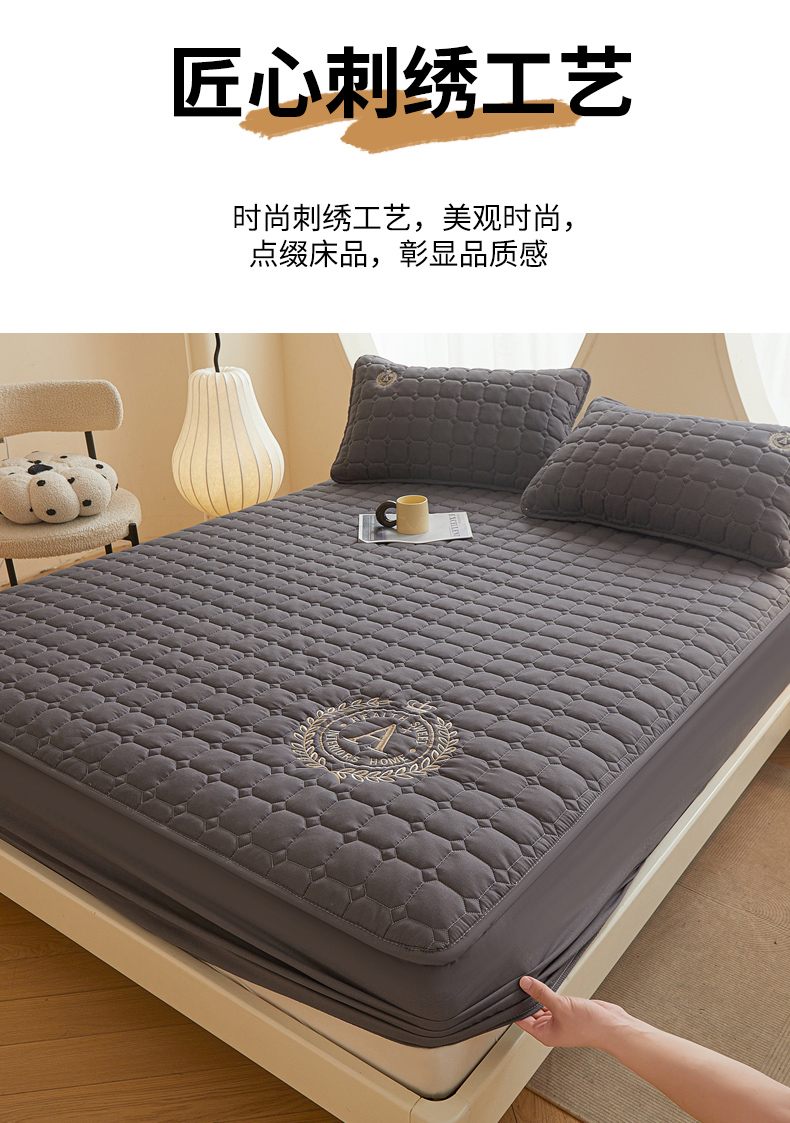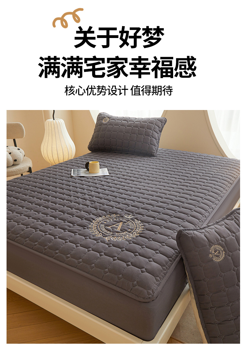 • 91家纺网 家纺一手货源 找家纺 慕木家纺 2025新品A类原棉皇冠刺绣-A大豆夹棉床笠保护垫防尘套 深灰