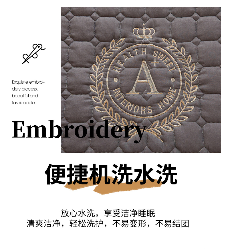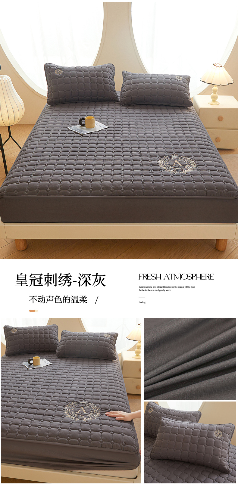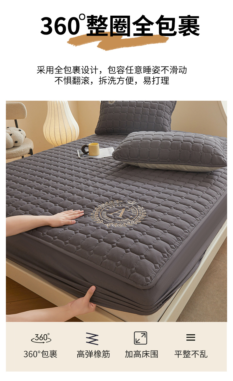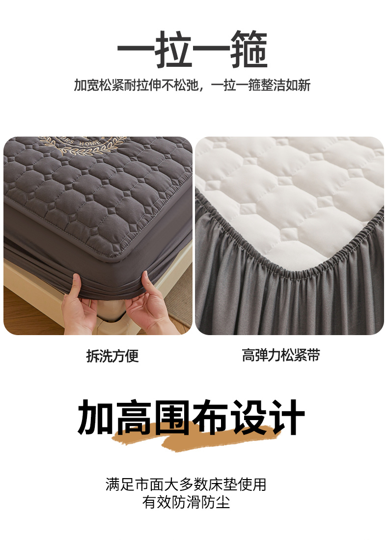 • 91家纺网 家纺一手货源 找家纺 慕木家纺 2025新品A类原棉皇冠刺绣-A大豆夹棉床笠保护垫防尘套 深灰
