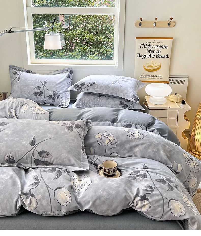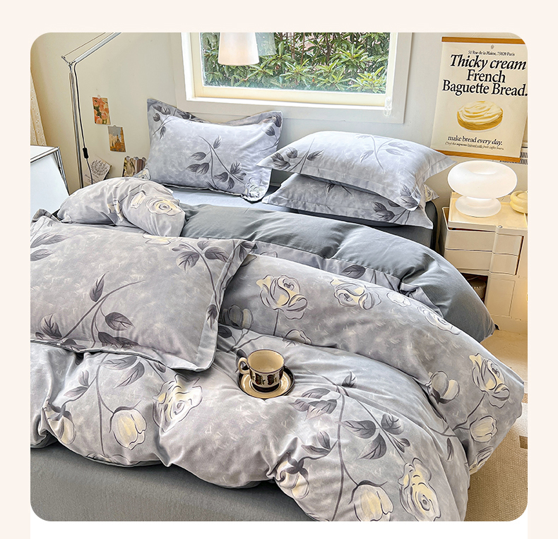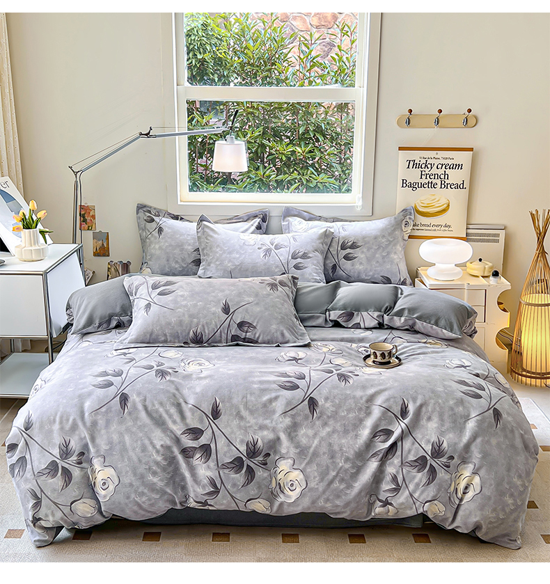 品乐家纺 2024新款全棉生态棉印花磨毛四件套 兰黛之韵-灰
