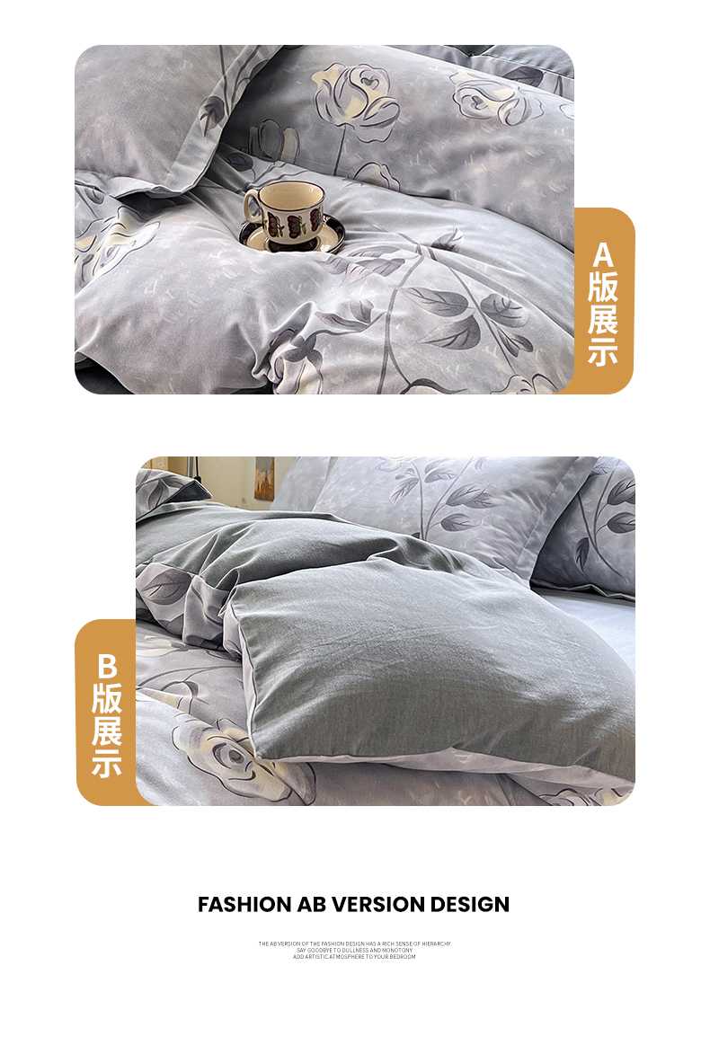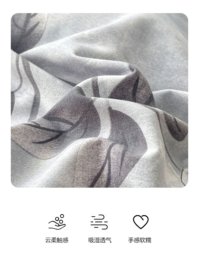 商品名称:品乐家纺 2024新款全棉生态棉印花磨毛四件套 兰黛之韵-灰