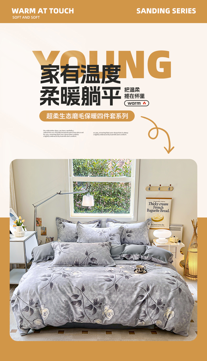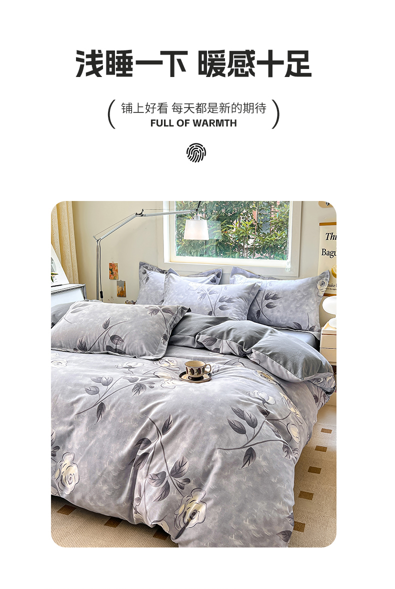(总)品乐家纺 2025秋冬新款糯米绒缇肤绒印花贝壳边四件套,卡拉-灰,开心熊-米,南笙-咖,南笙-绿,浅夏-咖,素影-酒红,素影-紫,小樱桃-酒红,叶茂-驼