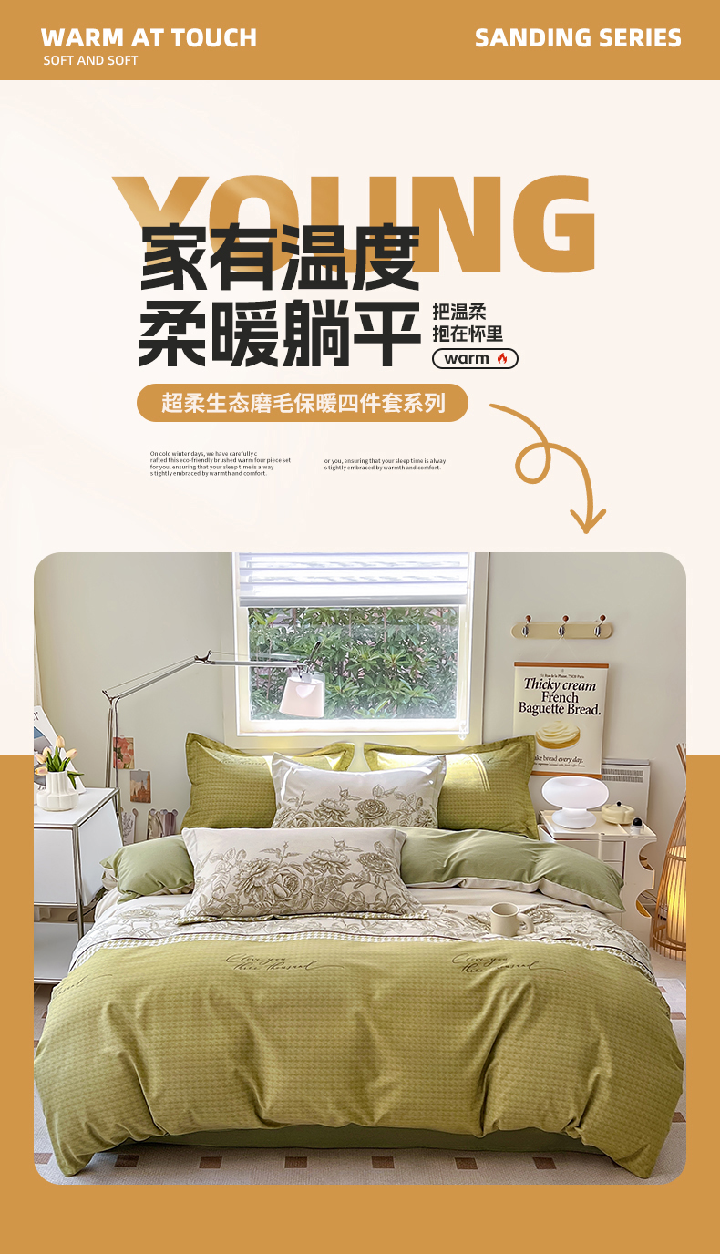 (总)品乐家纺 2025新款32支超柔生态磨毛四件套,川屿-咖,春意,朵唯-桔,朵唯-绿,花棠-粉,景秋-红,兰序-桔,兰茵-蓝,拾光-灰,桃汐-粉,桃汐-桔,小萌兔-绿,忆甜-米紫,郁郁幽兰-紫,鸢香-红,芷柔-粉