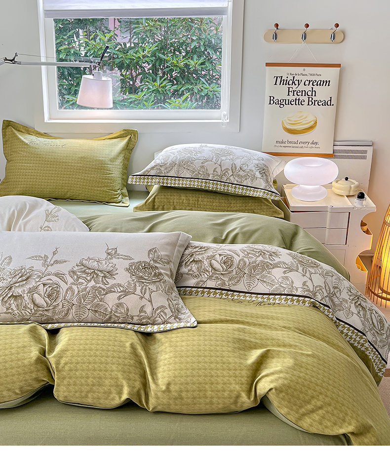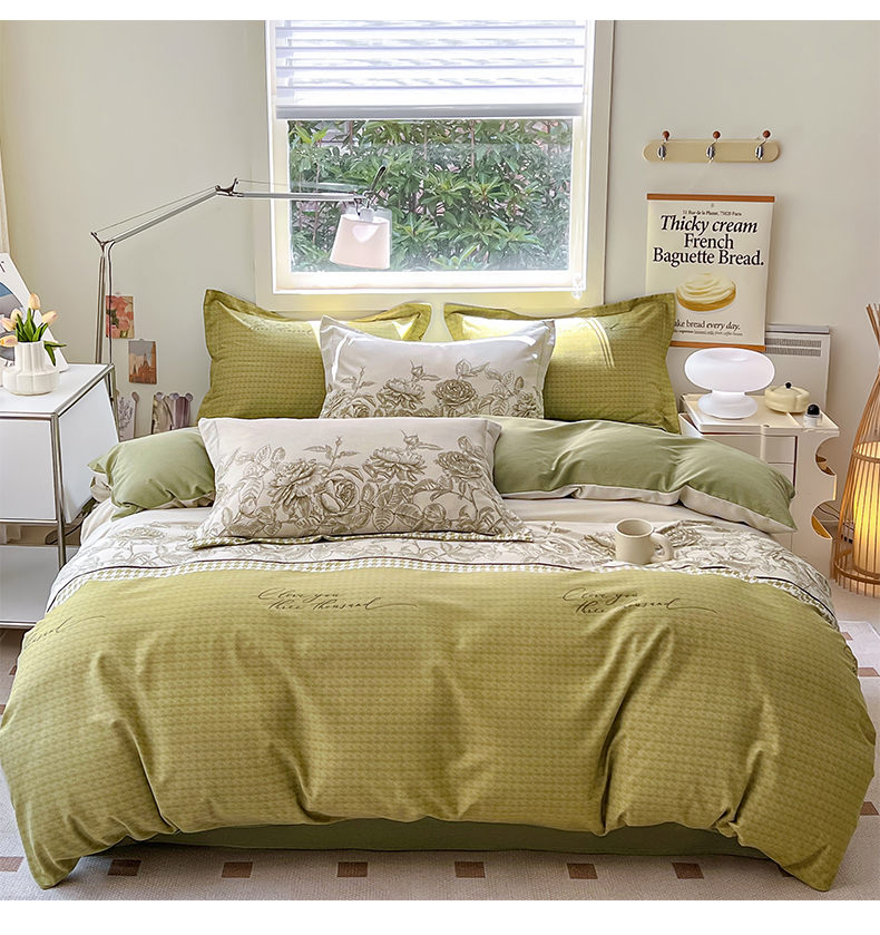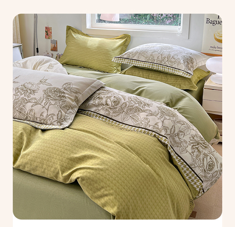 品乐家纺 2024新款全棉生态棉印花磨毛四件套 温妮莎-绿