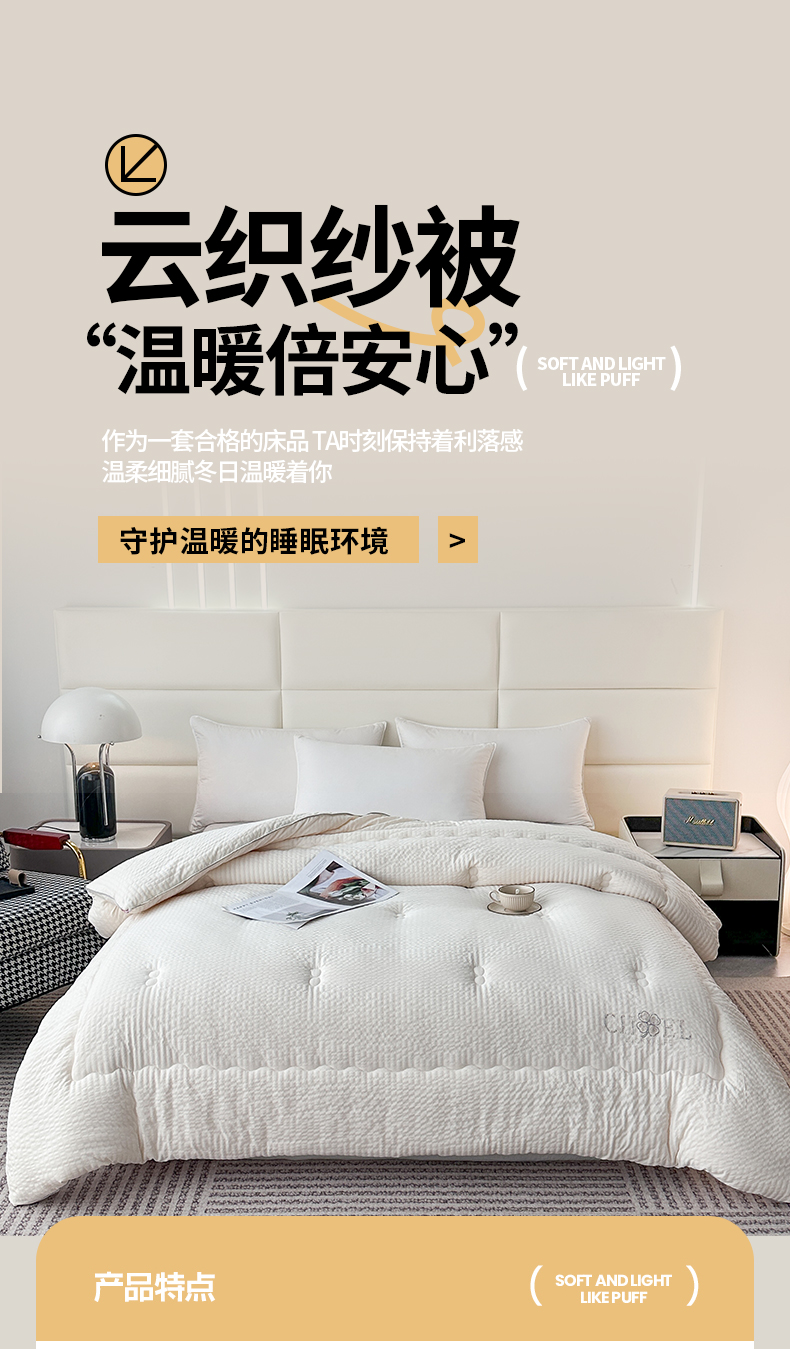 商品名称:81号家纺 2024新款轻奢纯色云织纱被子被芯冬被春秋被大豆被 轻奢-白
