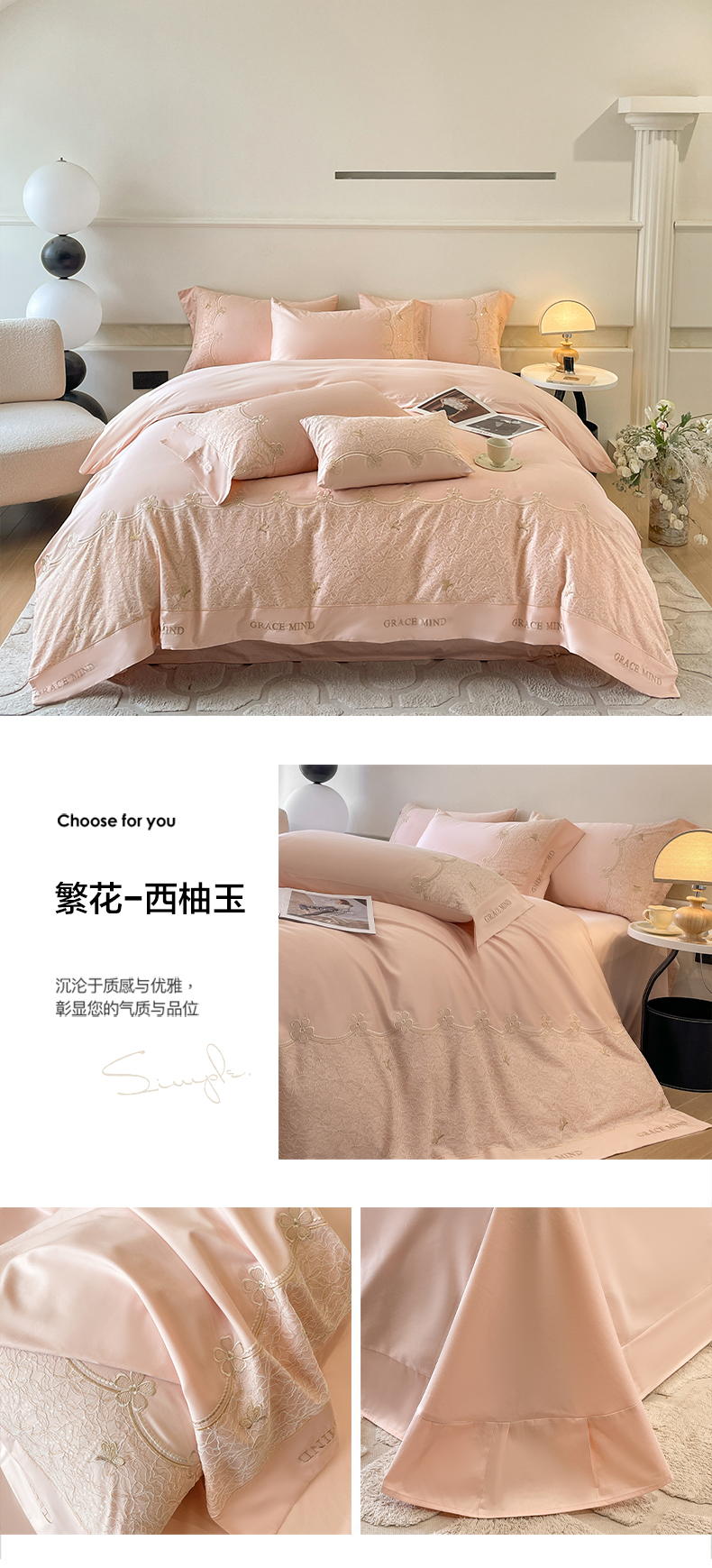 (总)祺瑞佳家纺 2025新品100%棉全棉加厚磨毛全棉刺绣绣花蕾丝法式四件套-郁金物语(标准券后不得低于298元,大号券后不得低于318元),郁金物语-粉玉,郁金物语-松绿,郁金物语-香槟