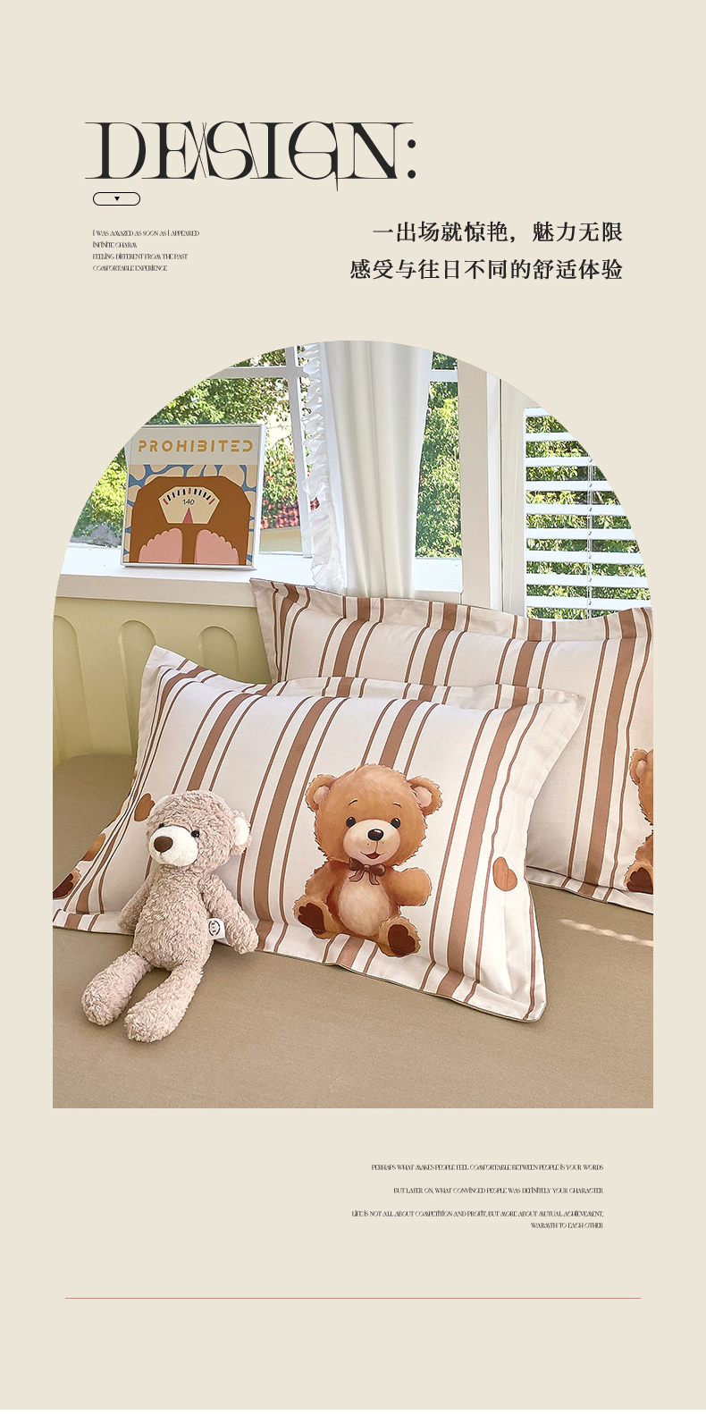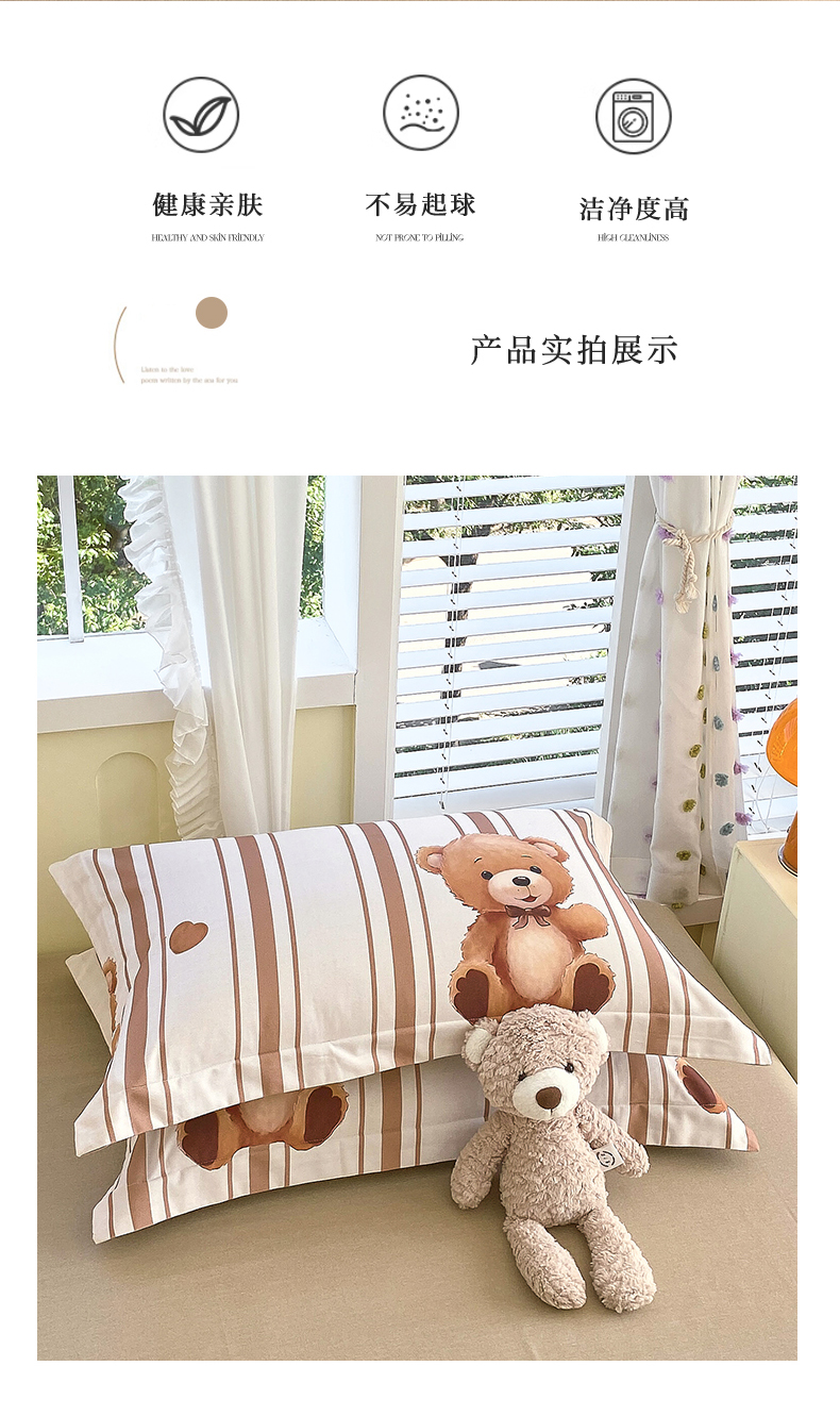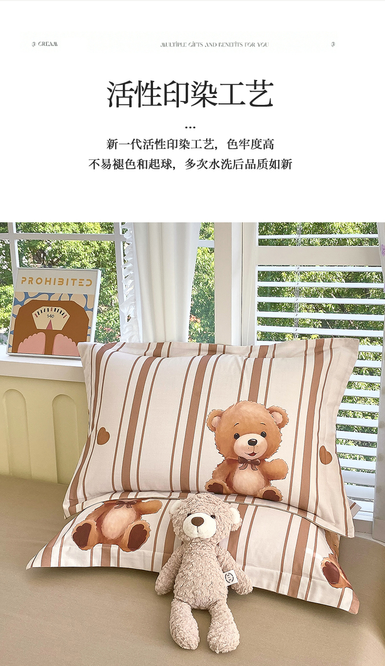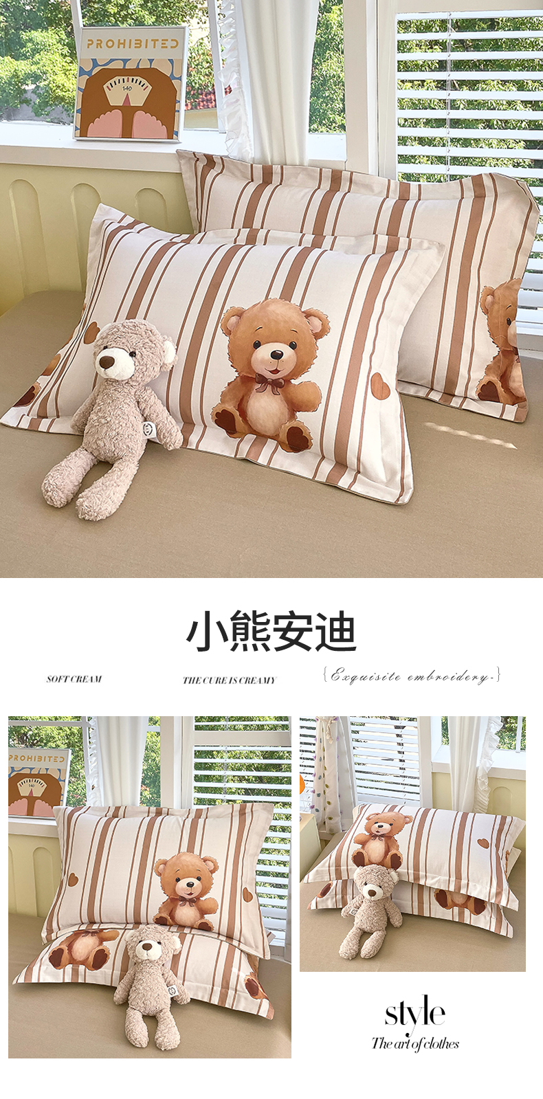 2024新款AB版.生态磨毛印花单枕套 小熊安迪