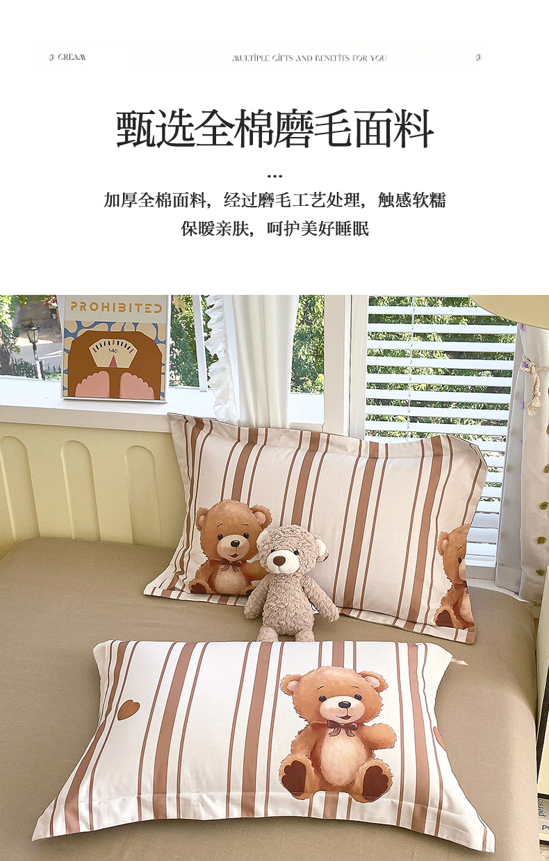 商品名称:2024新款AB版.生态磨毛印花单枕套 小熊安迪