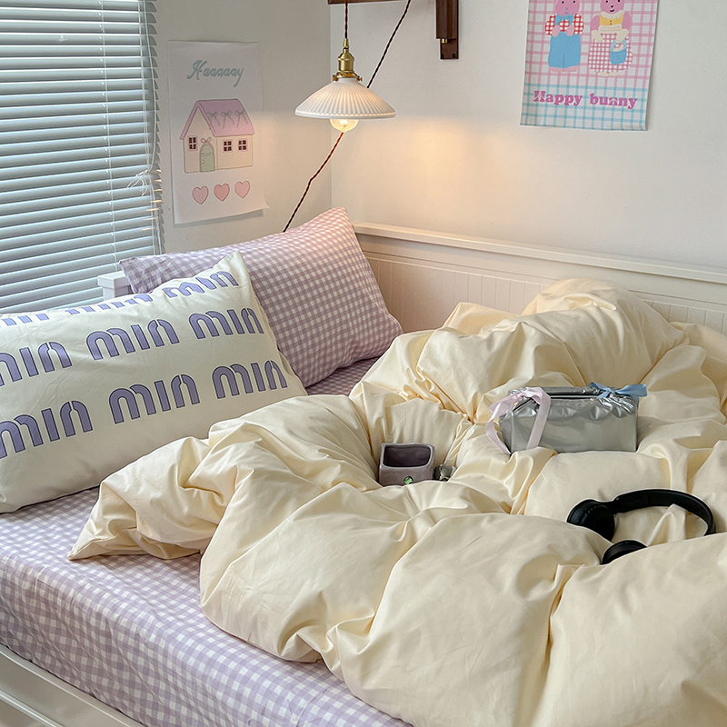2024新款全棉纯色大版枕套混搭款四件套 甜心可露丽