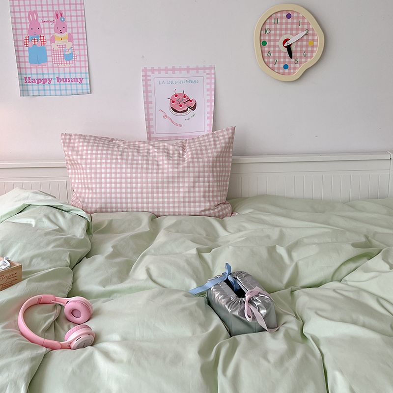 (总)昔可 2023新款全棉ins格子混搭系列四件套,ins简约绿格,粉蓝格,开心果格,学院格纹,粉绿格,海盐兰格,黄绿格,夏日蓝条,芝士黄条,紫芋泥芝士格