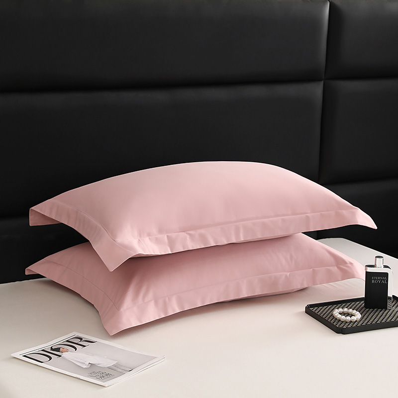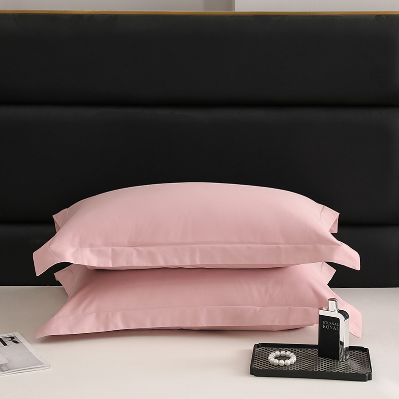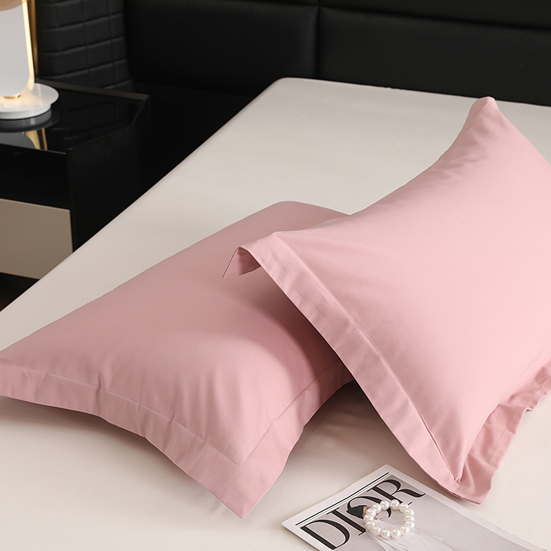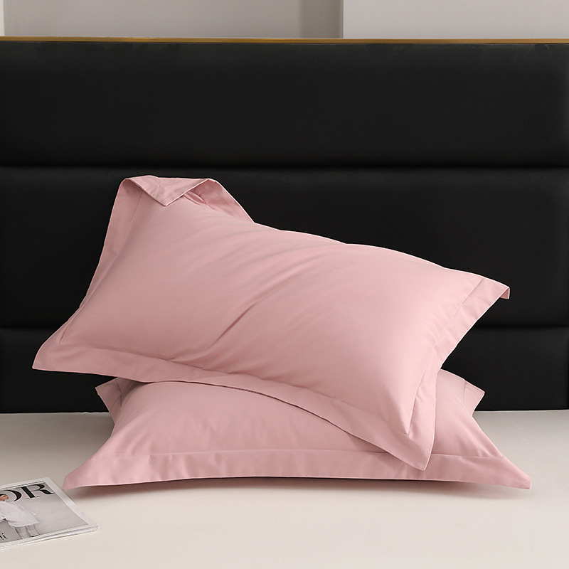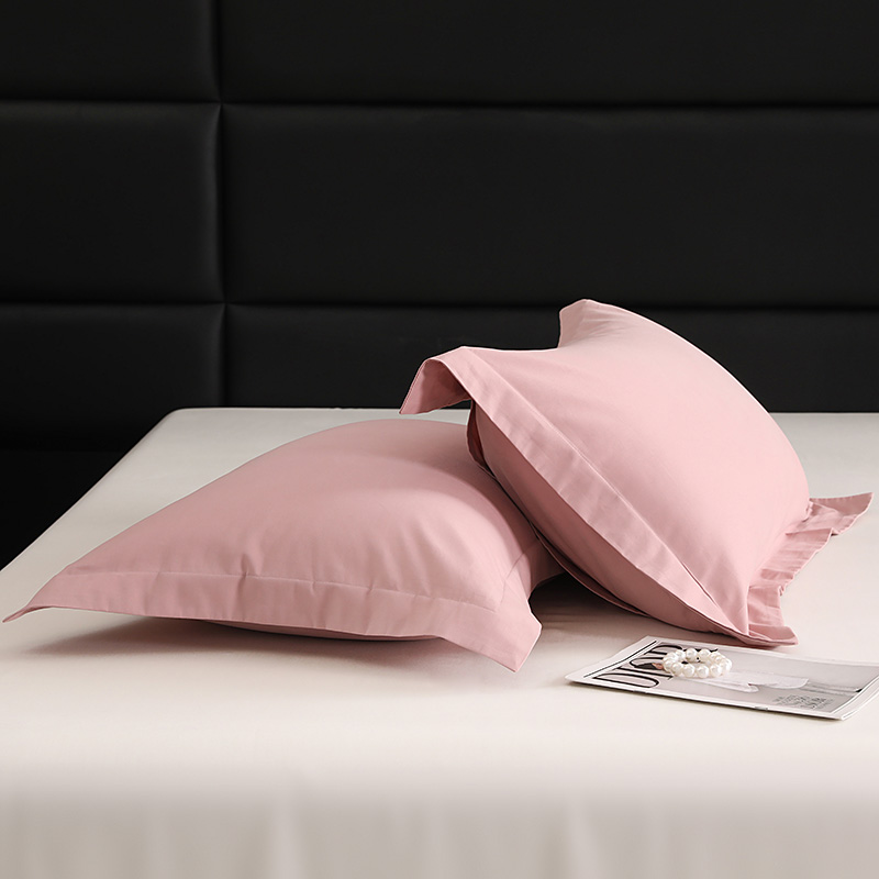 莱阁亿 2025秋冬新款高支高密全棉纯棉磨毛双拼纯色单枕套 枕套单件 藕肤色